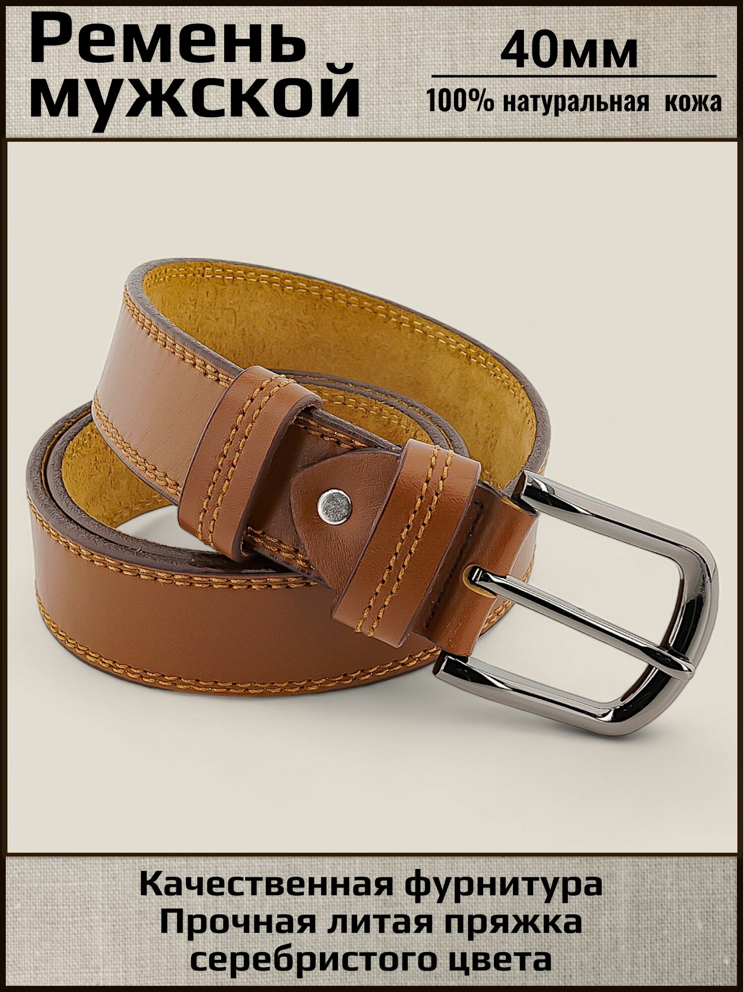 10 цен на Ремень мужской кожаный Aksy Belt светло-коричневый, 40мм, 2 строчка, Италия, 110 см