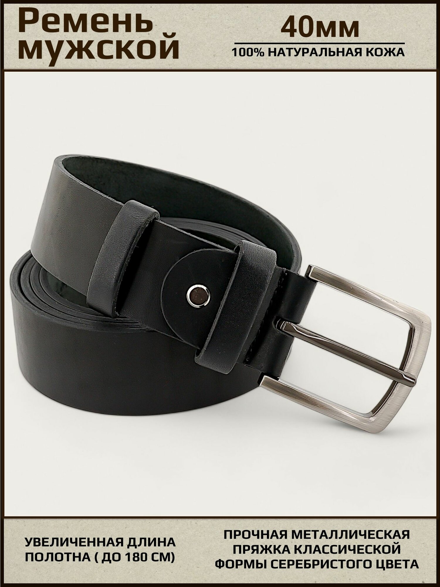 10 цен на Ремень мужской кожаный AKSY BELT черный, 40 мм, гладкий, большой размер, 145 см