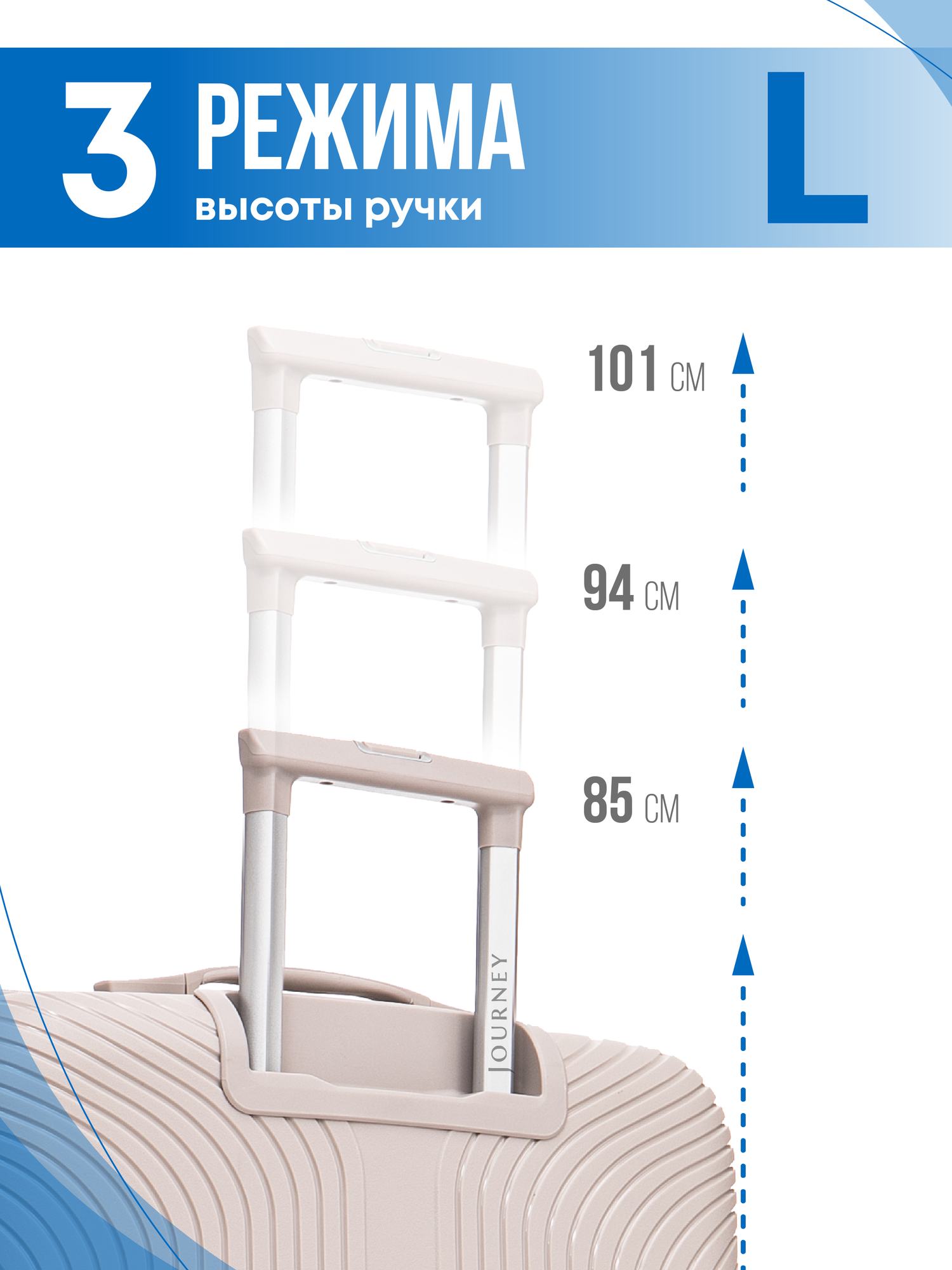 Отзывы на Чемодан JOURNEY, полипропилен, прочный, износостойкий, водонепроницаемый, 105 л, размер L, Бежевый