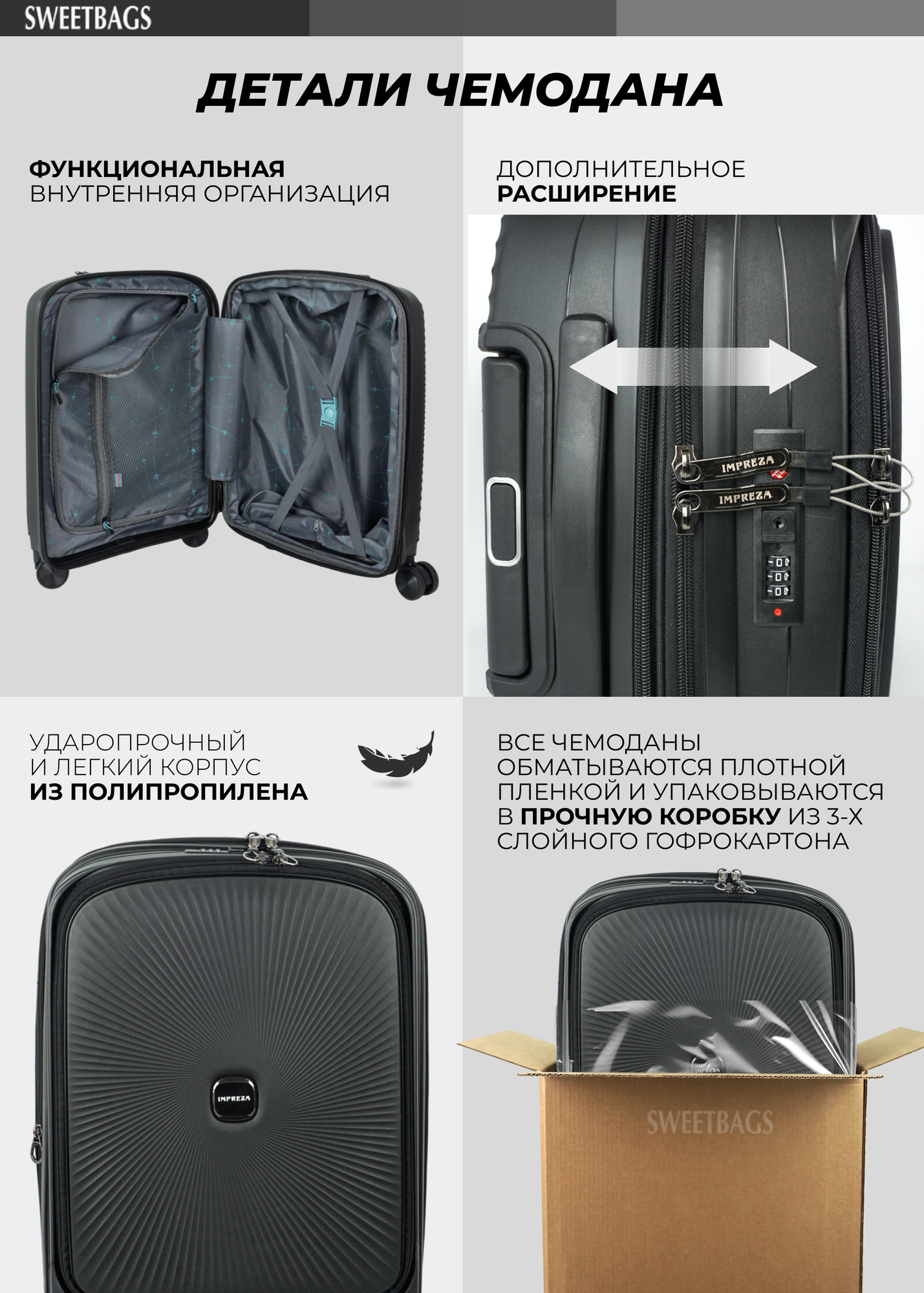 Чемодан Sweetbags маленький (ручная кладь) из полипропилена с расширением на 4-х колесах с TSA замком (Insight) темно-серый S 5 290 ₽