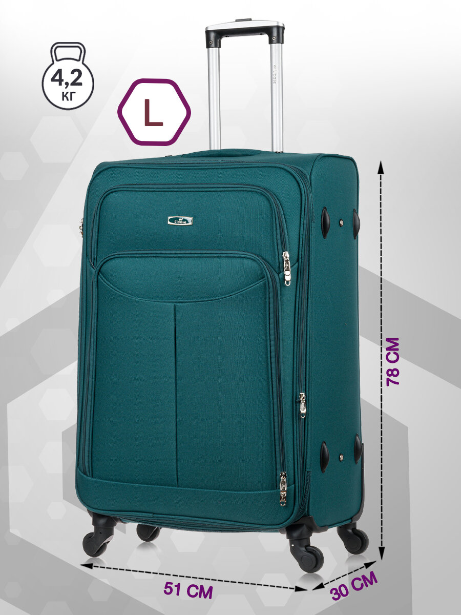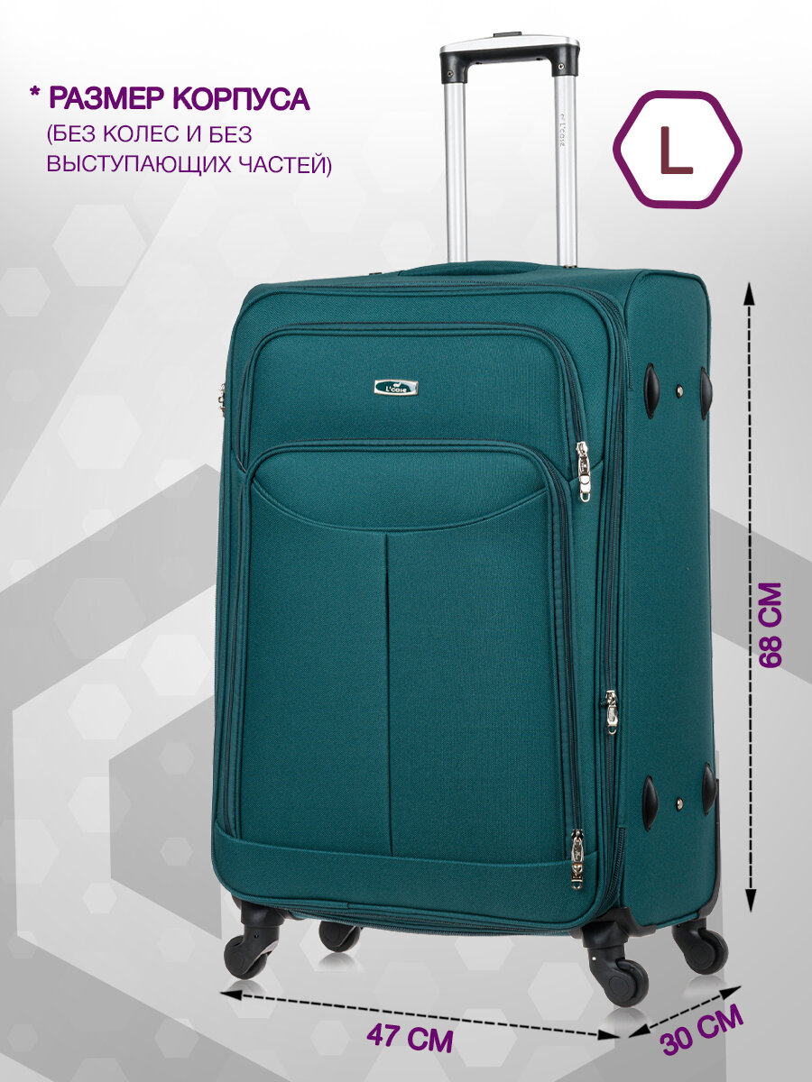 Чемодан на колесах Lcase AMSTERDAM, Темно-зеленый. Большой размер L, тканевый, 75 см, 115 л. Дорожный чемодан на колесиках для путешествий и поездок. 7 390 ₽