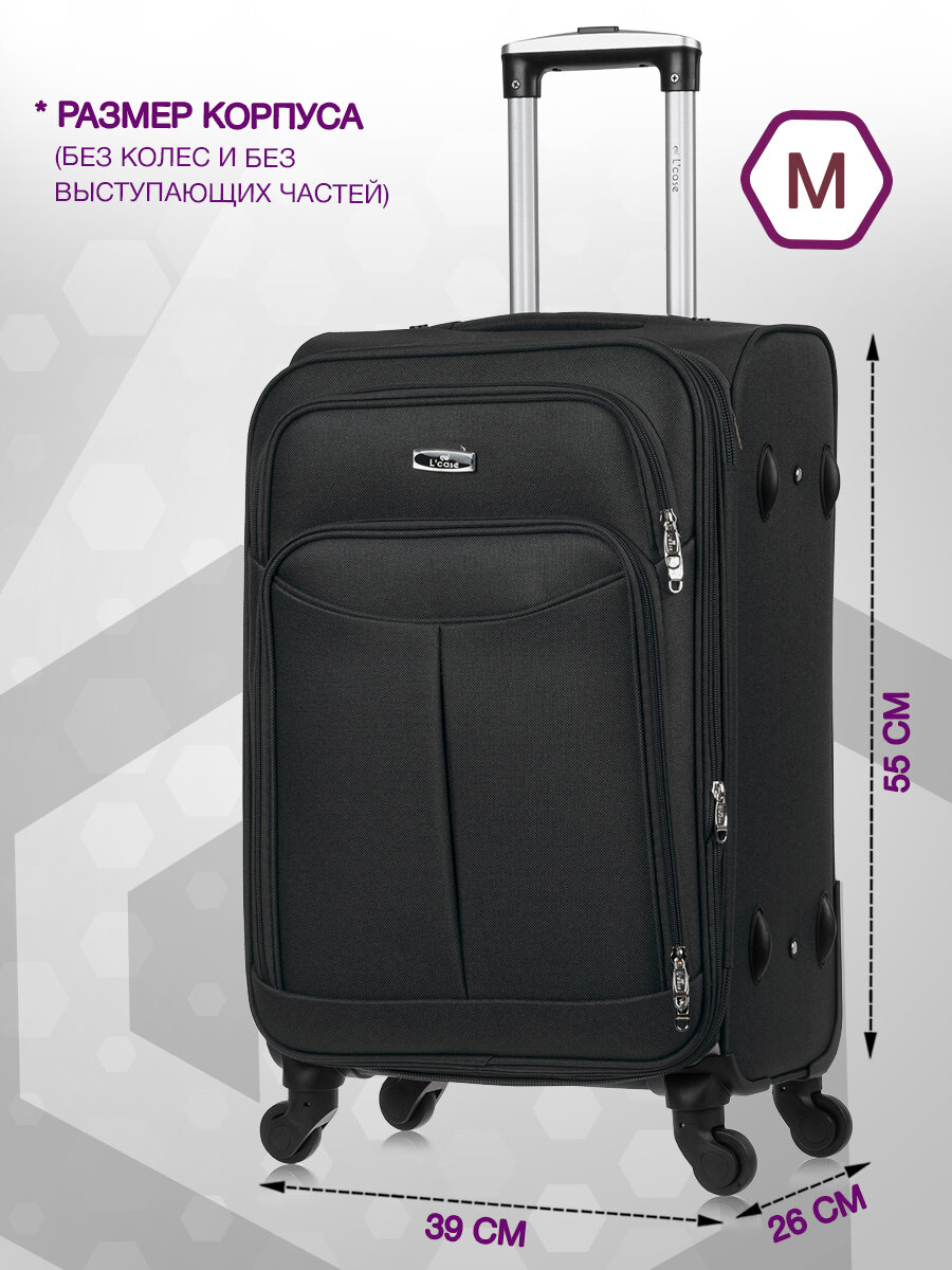 10 цен на Чемодан на колесах M средний, черный - Чемодан тканевый, семейный Lcase