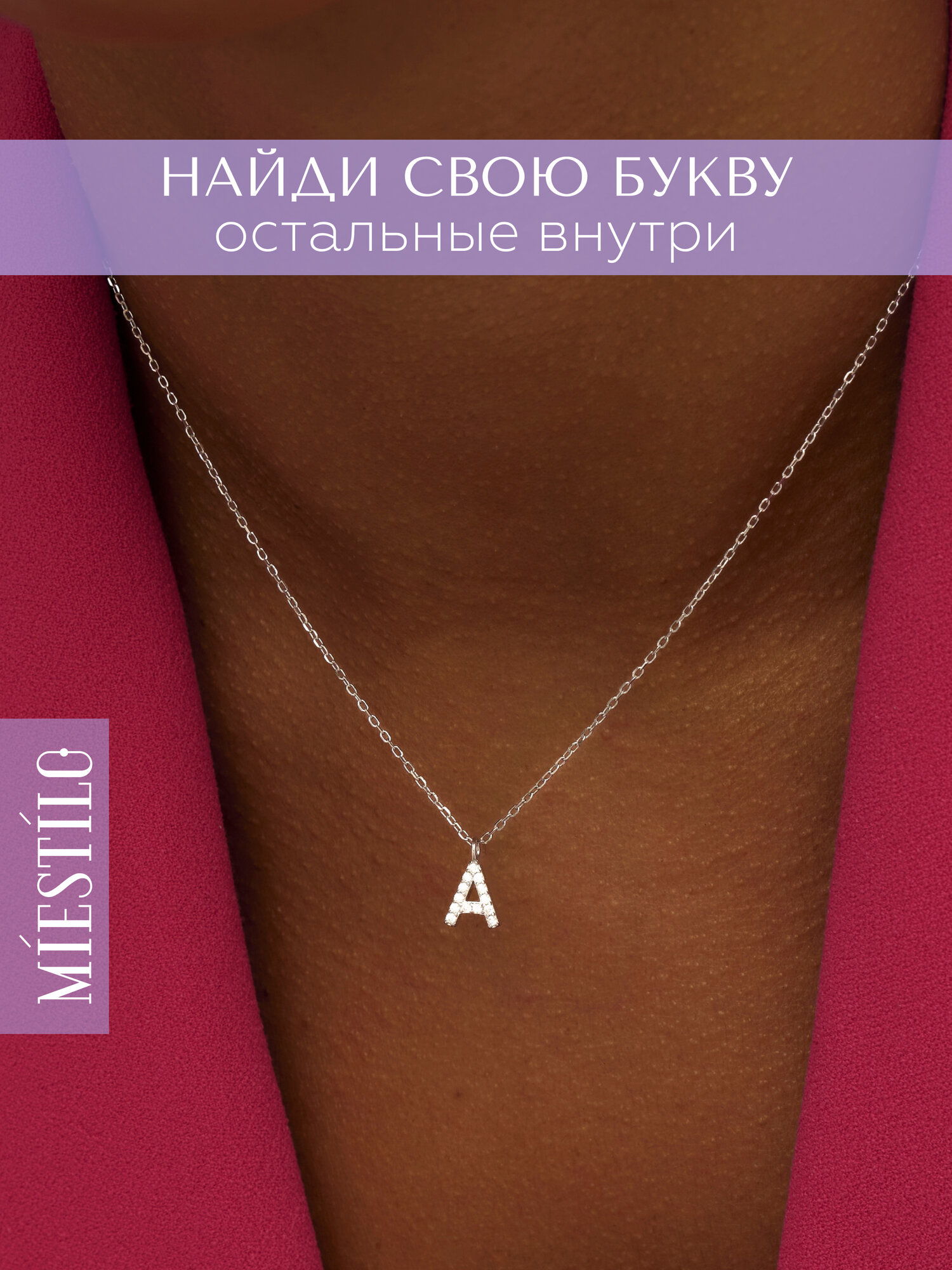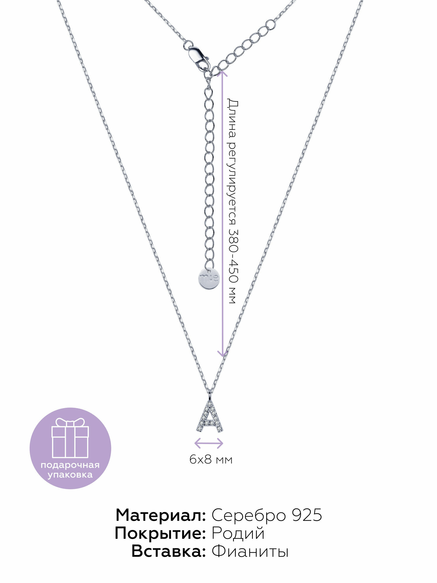 Подвеска MIESTILO женское серебро 925 с камнями буква A информация: