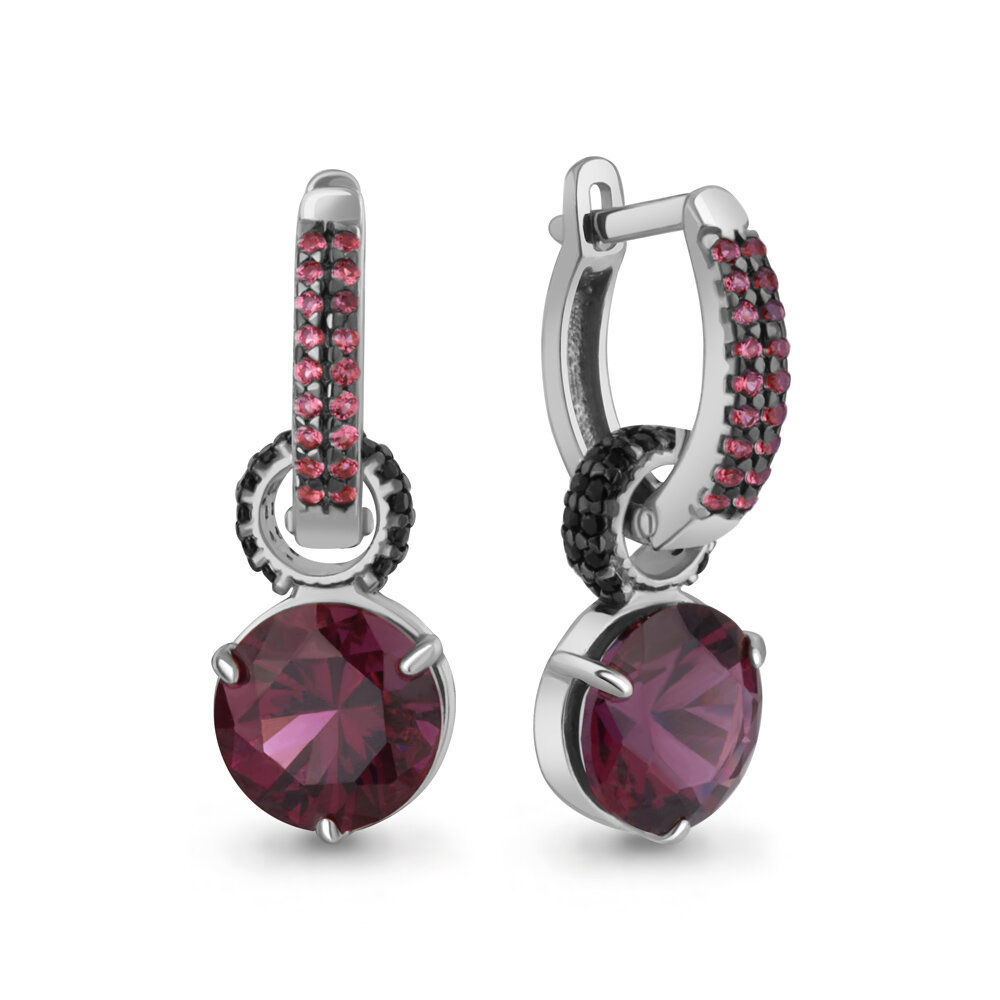 Серебряные серьги-трансформеры DIAMANT-ONLINE с аметистом, турмалином и ювелирным кристаллом А4703184ЧВ информация: