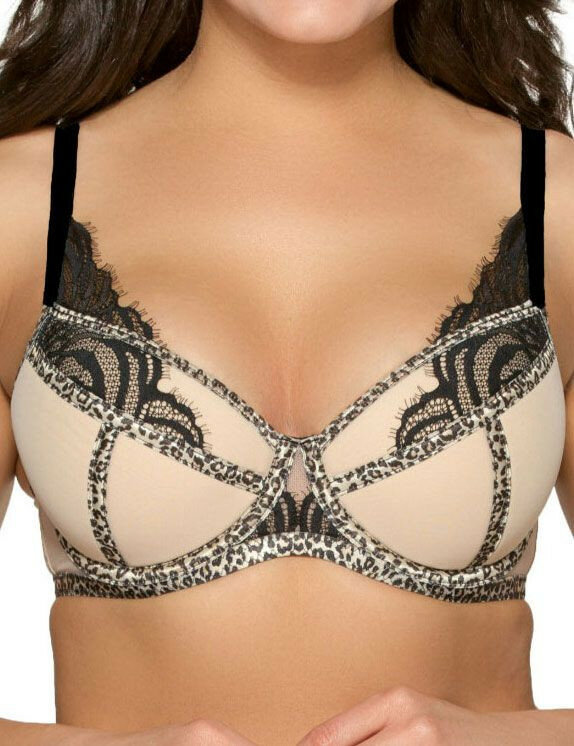 Пуш-ап бюстгальтер с контрастным кружевом и леопардовой отделкой, телесный, 75C информация: