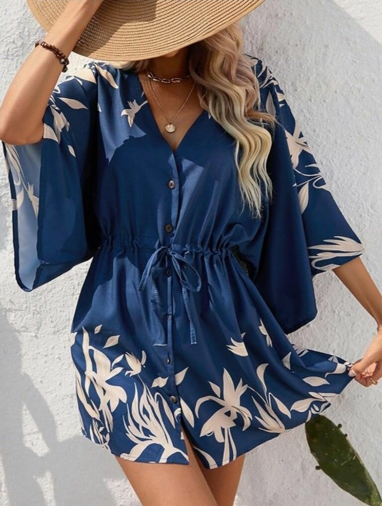 10 цен на Туника пляжная, платье домашнее,54RU,синий в белых цветах