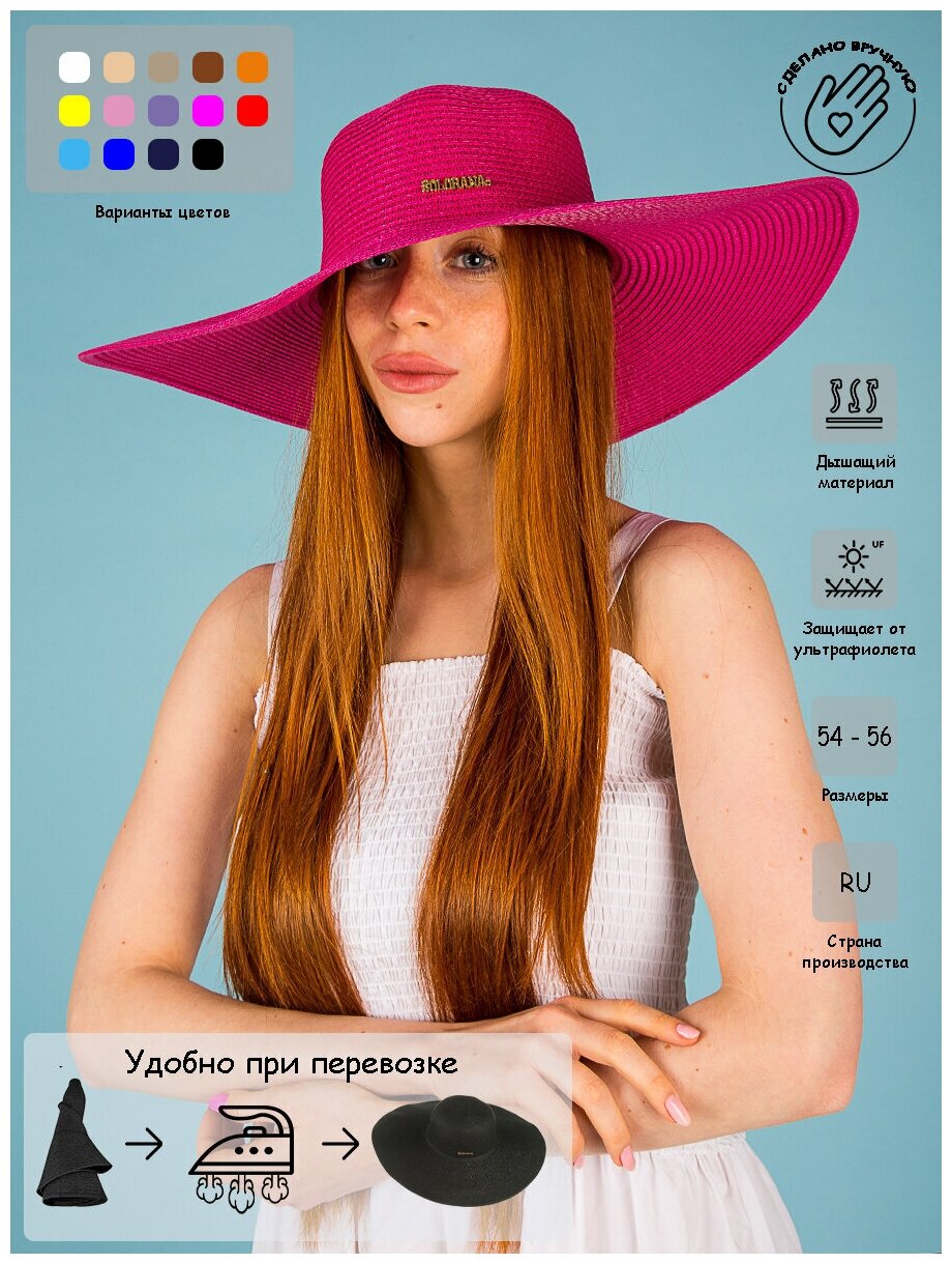 Шляпа Solorana женская с широкими полям р.56 фуксия информация: