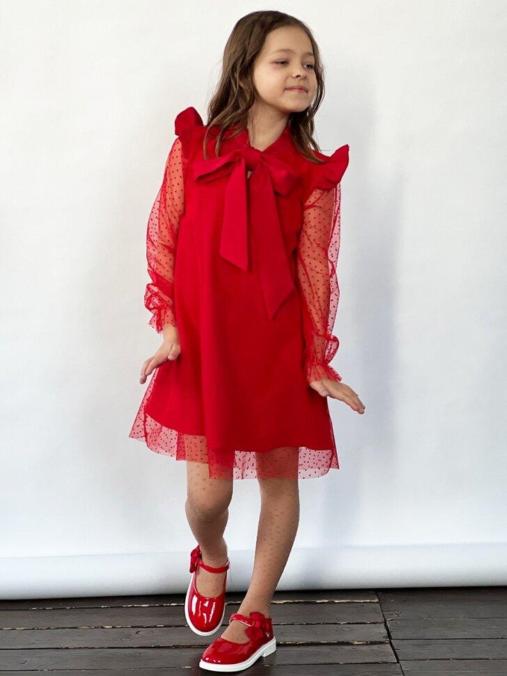 Платье для девочки нарядное бушон ST50, отделка фатин, цвет красный (122-128) 2 500 ₽
