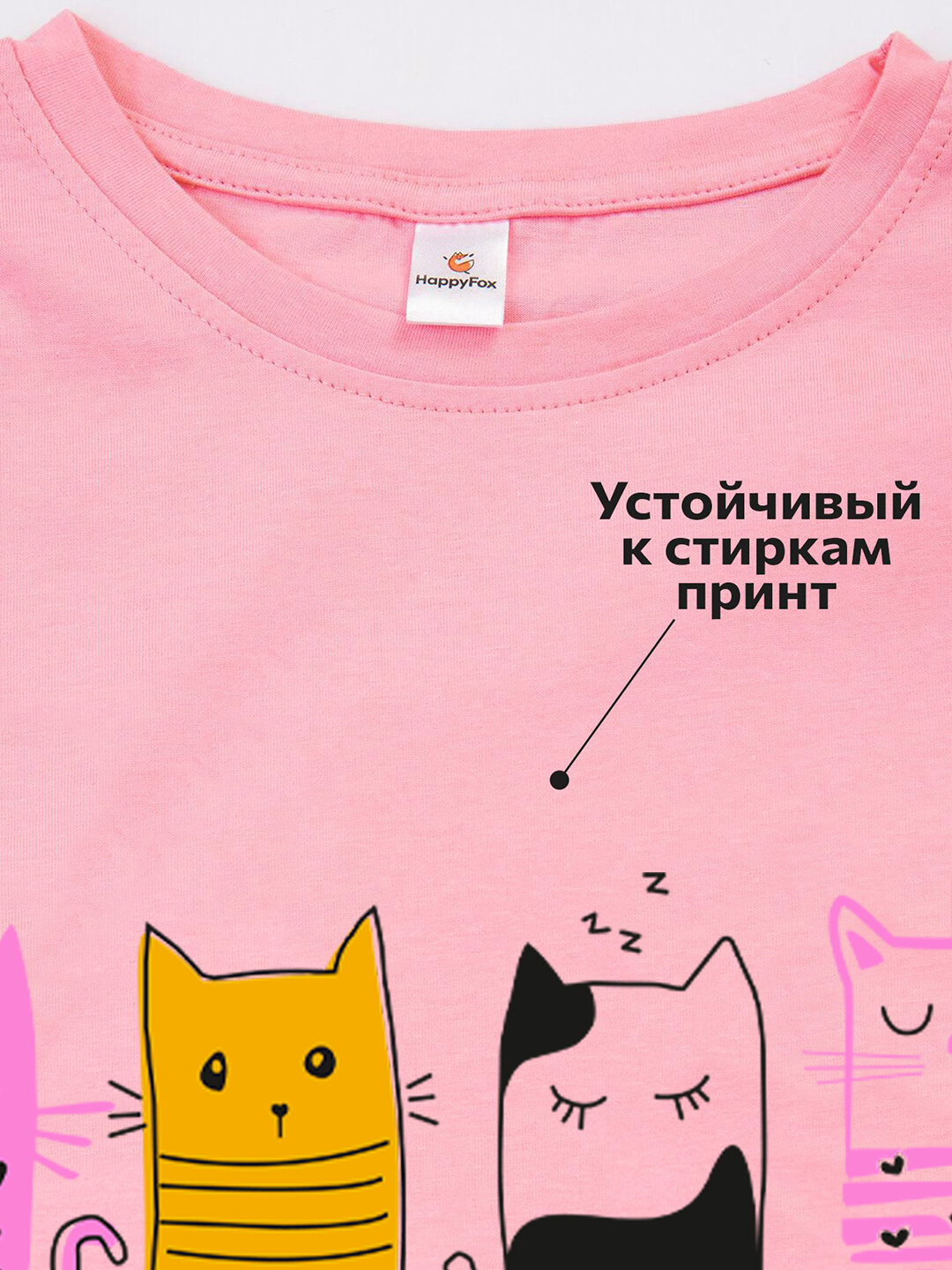 Футболка для девочки с принтом хлопок Happyfox HF66031D котики,розовый 116 информация: