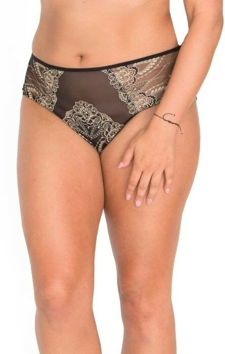Женские трусики-слипы из сетки с вышивкой бежевой нитью, черный, XXL