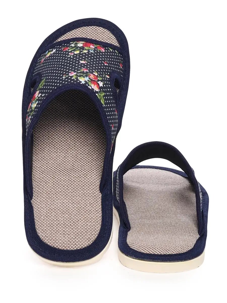 Женские домашние тапочки "LepiloV", открытые, на текстильной стельке. Размер 39. Синий горох, цветы. 500 ₽