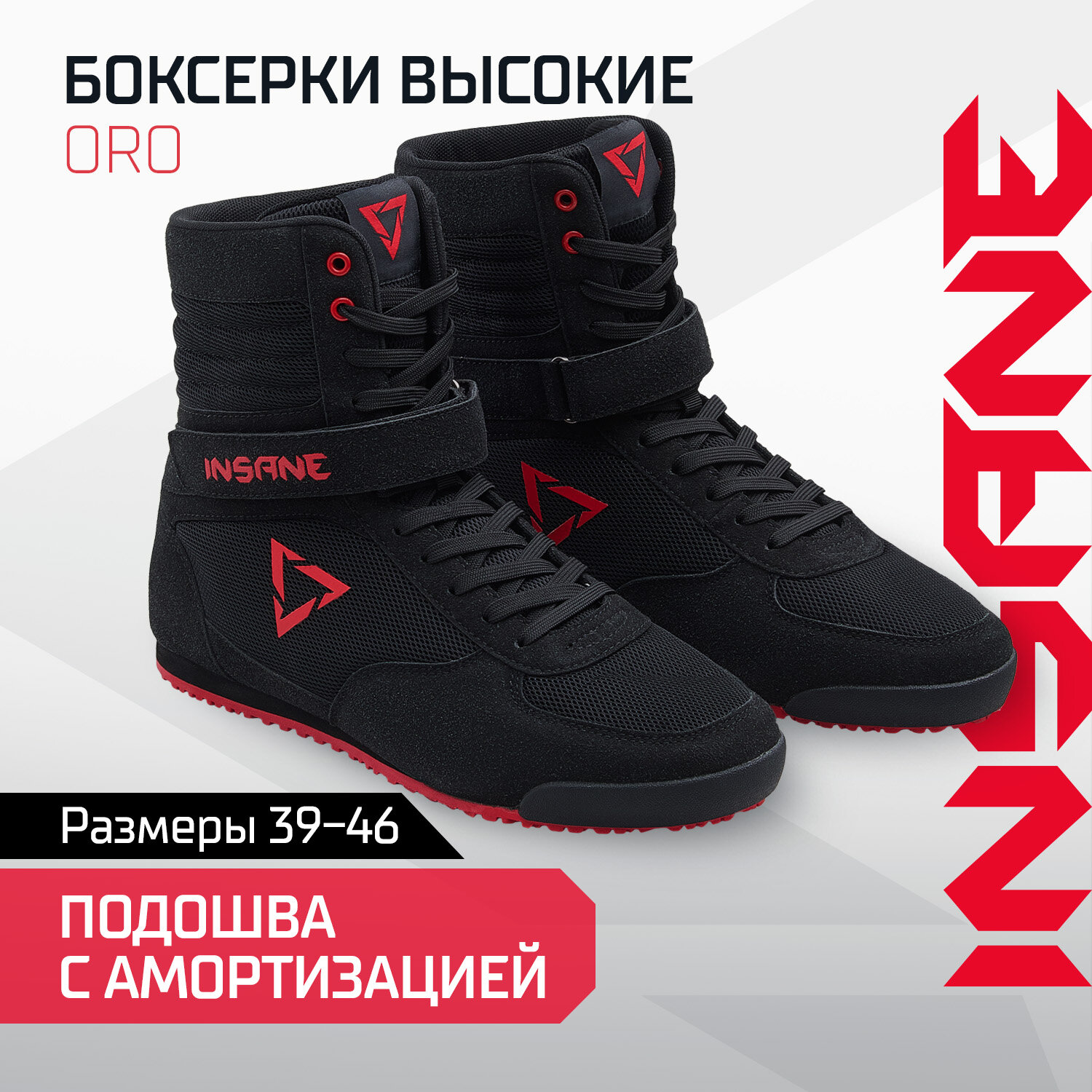 Обувь для бокса высокая Insane Oro, черный/красный размер 46 информация: