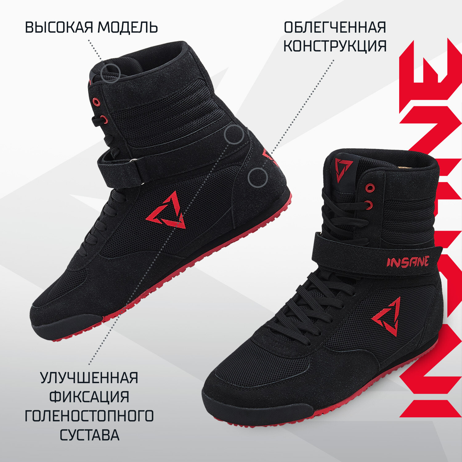 Обувь для бокса высокая Insane Oro, черный/красный размер 40 3 459 ₽