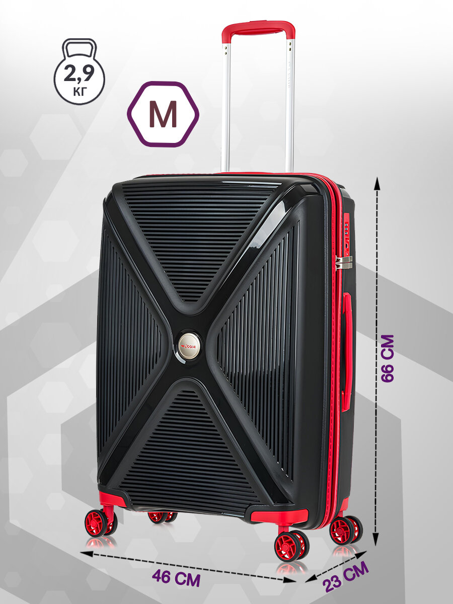 Чемодан на колесах M средний, черный - Чемодан полипропилен, семейный Lcase информация: