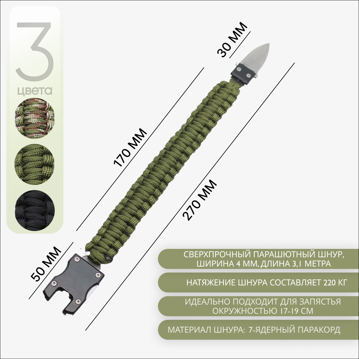 Браслет на запястье из паракорда для выживальщика, с ножом, тактический, защитный цвет 679 ₽