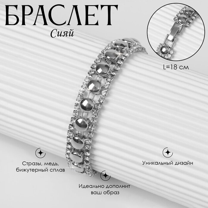 10 цен на Браслет со стразами "Сияй" нить кругами, цвет белый в серебре, 18см 4695037