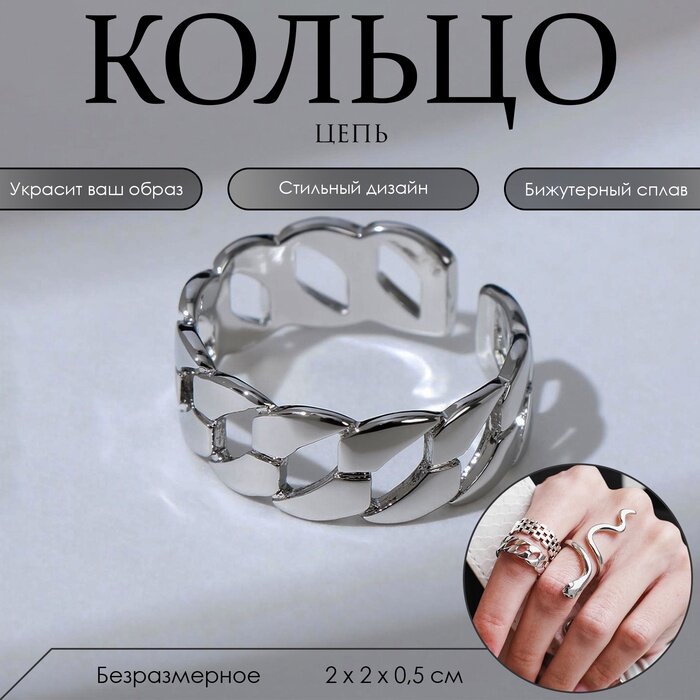 Кольцо "Цепь" круглые звенья, цвет серебро, безразмерное информация: