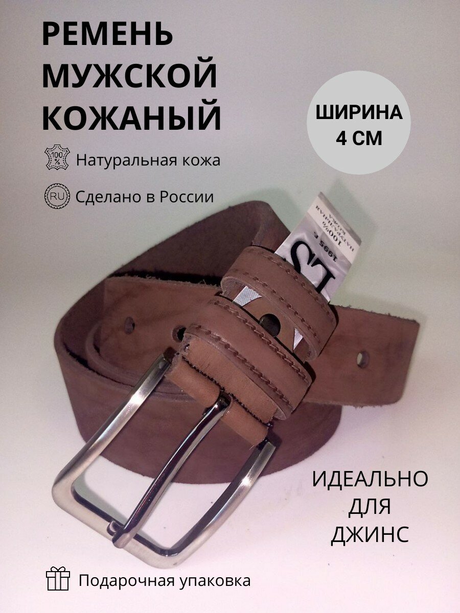 Отзывы на Ремень мужской кожаный для джинс, ширина 4 см, коричневый без рисунка 130 см