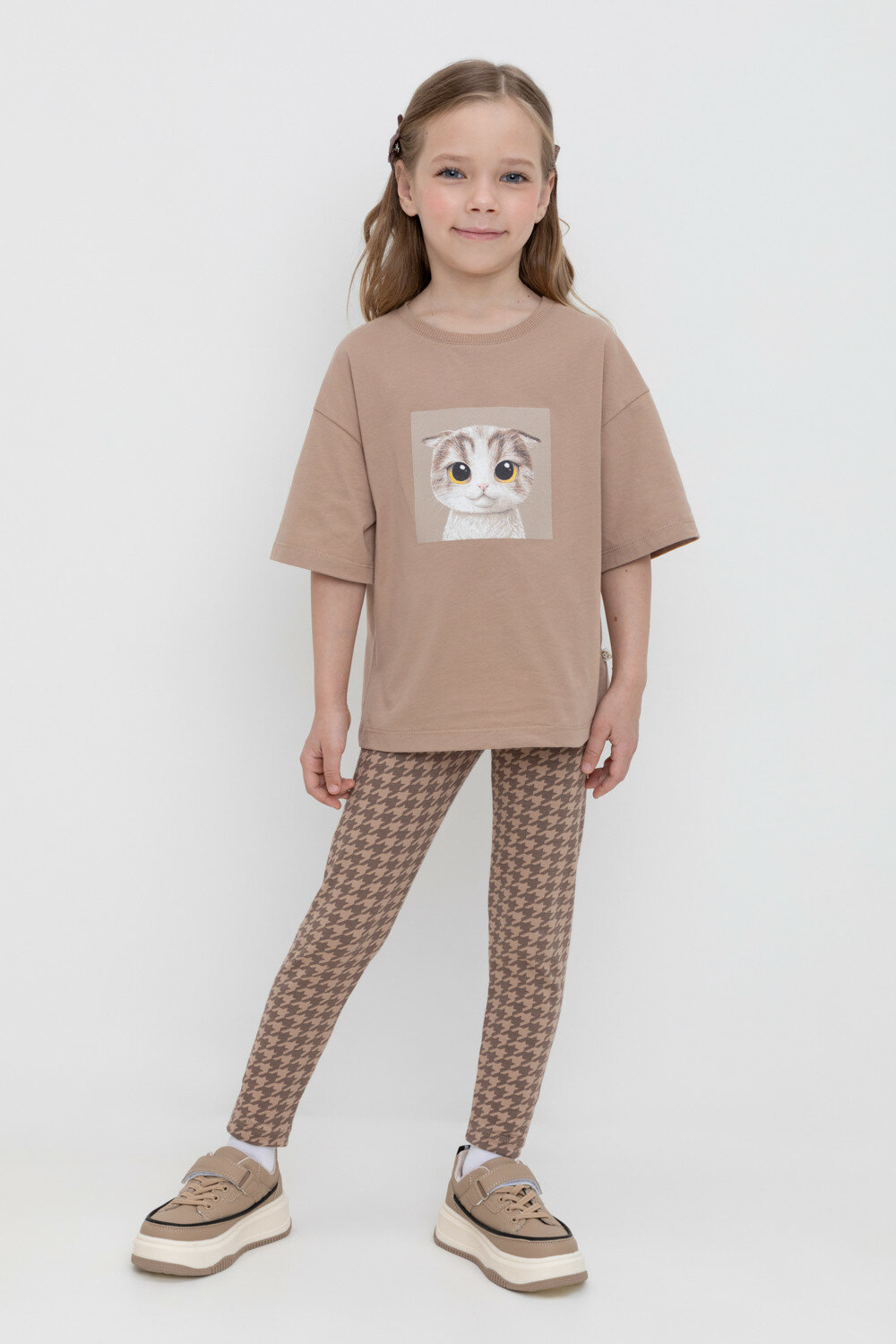 Бриджи для девочки, из натурального хлопка, Crockid КР 4074/беж,гусиная лапка к509 р 76/146 1 127 ₽