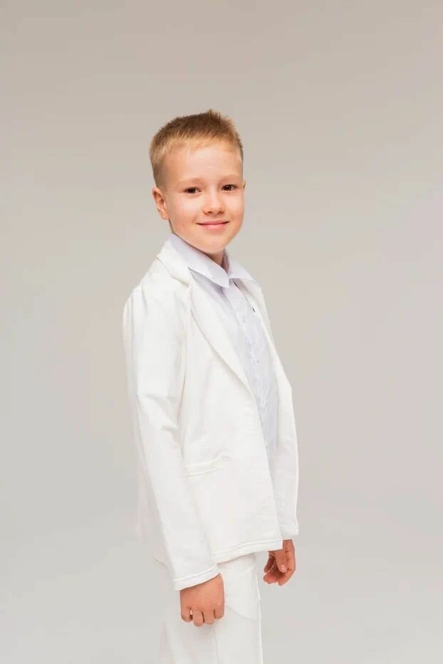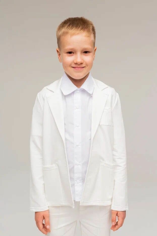 Отзывы на жакет детский для мальчика трикотажный / пиджак школьный / в школу на праздник / белый 110