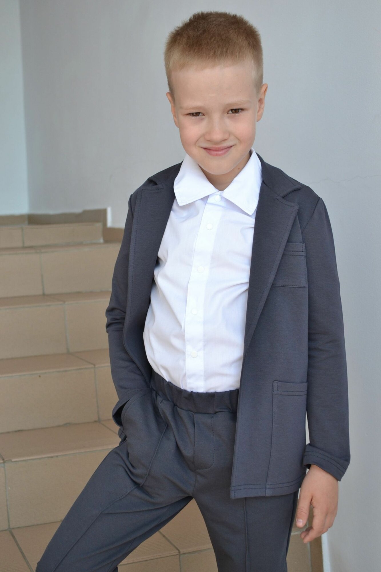Отзывы на жакет детский для мальчика трикотажный / пиджак школьный / в школу на праздник / темно-серый / 122