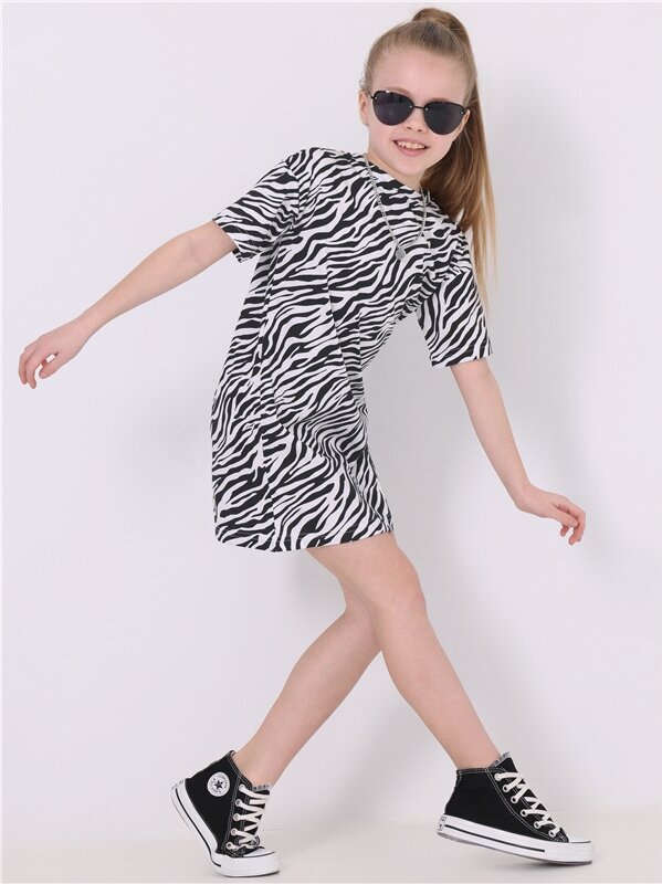 Платье - футболка для девочки летнее короткое туника детская Апрель 1ДПК4410001н/1358/*/4376/*/*/*/* черный,белый 72-140 информация: