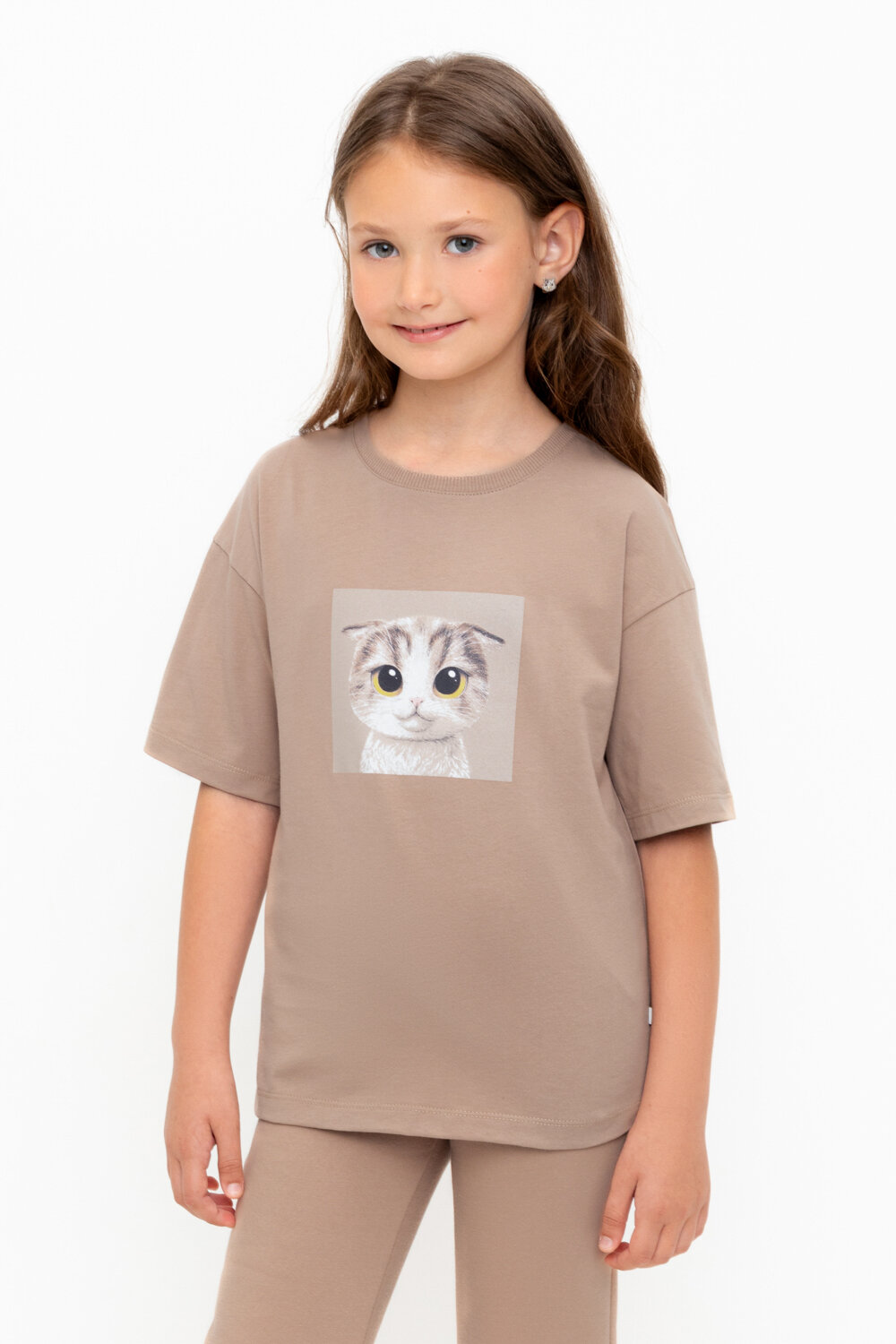 Футболка для девочки из натурального хлопка, Crockid КР 301996/темно-бежевый, леопард к489 р 56/110