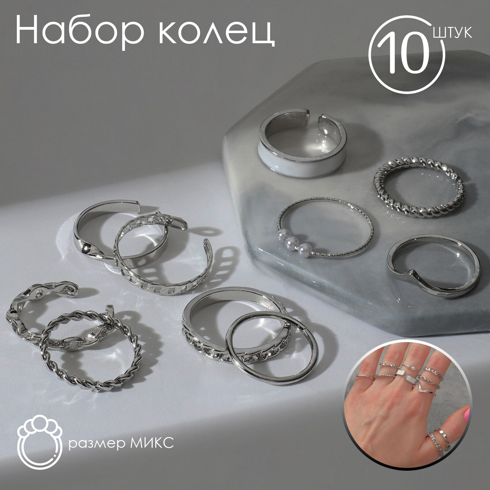10 цен на Набор колец 10 штук "Тренд" элегантность, цвет белый в серебре, размер микс 7789970