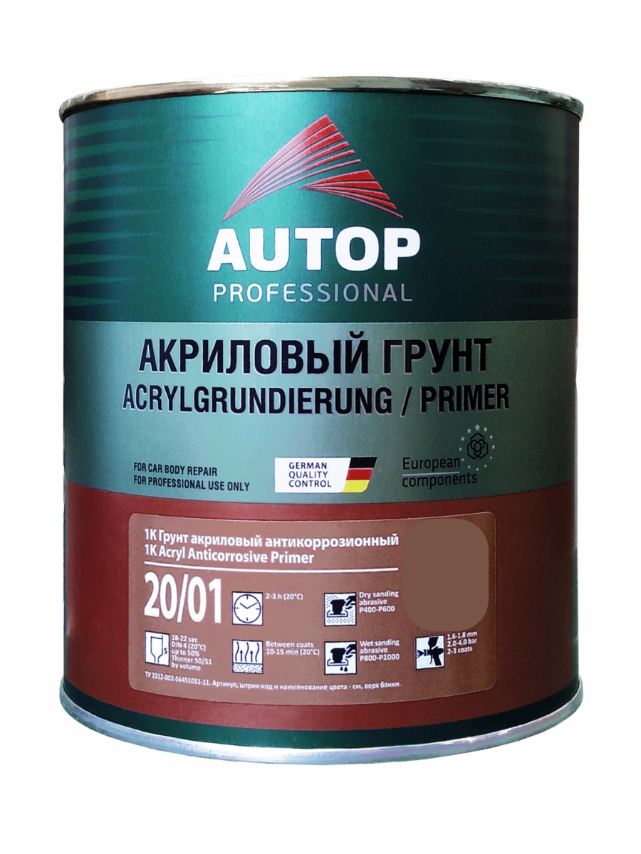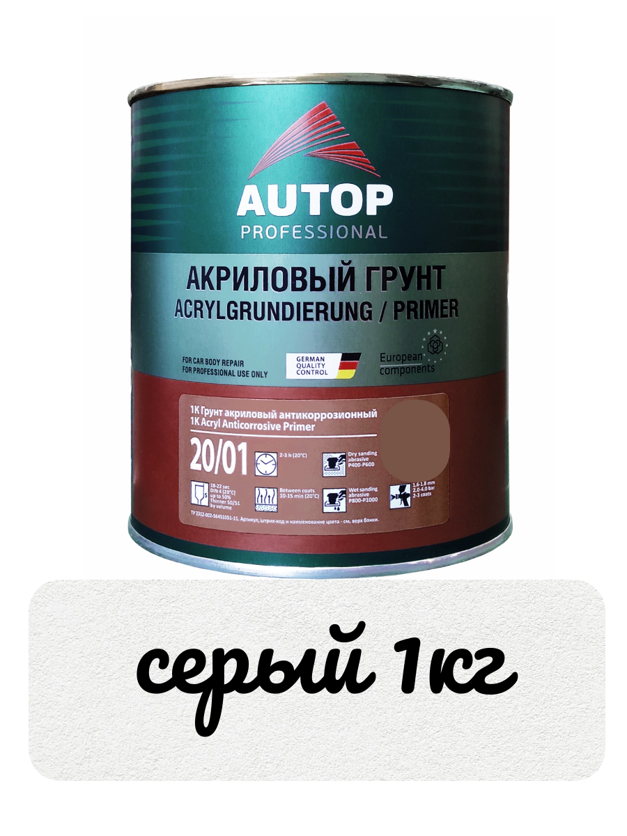 Грунт антикоррозионный 1К Acryl Anticorrosive Primer 20/01, серый, акриловый, - 1 кг - Аутоп/Autop информация:
