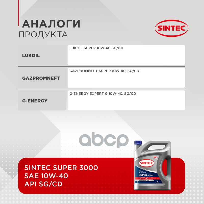 10 цен на SINTEC Масло Моторное Sintec Super 3000 10W-40 Полусинтетика 4Л 600240