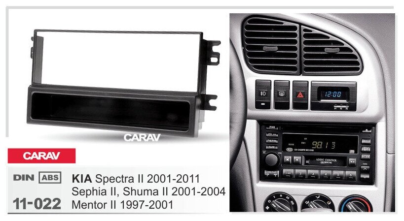 Переходная рамка 1-DIN для а/м KIA Spectra 2001-11; Sephia, Shuma 2001-04 ; Mentor 1997-01 (с карманом) CARAV 11-022 информация: