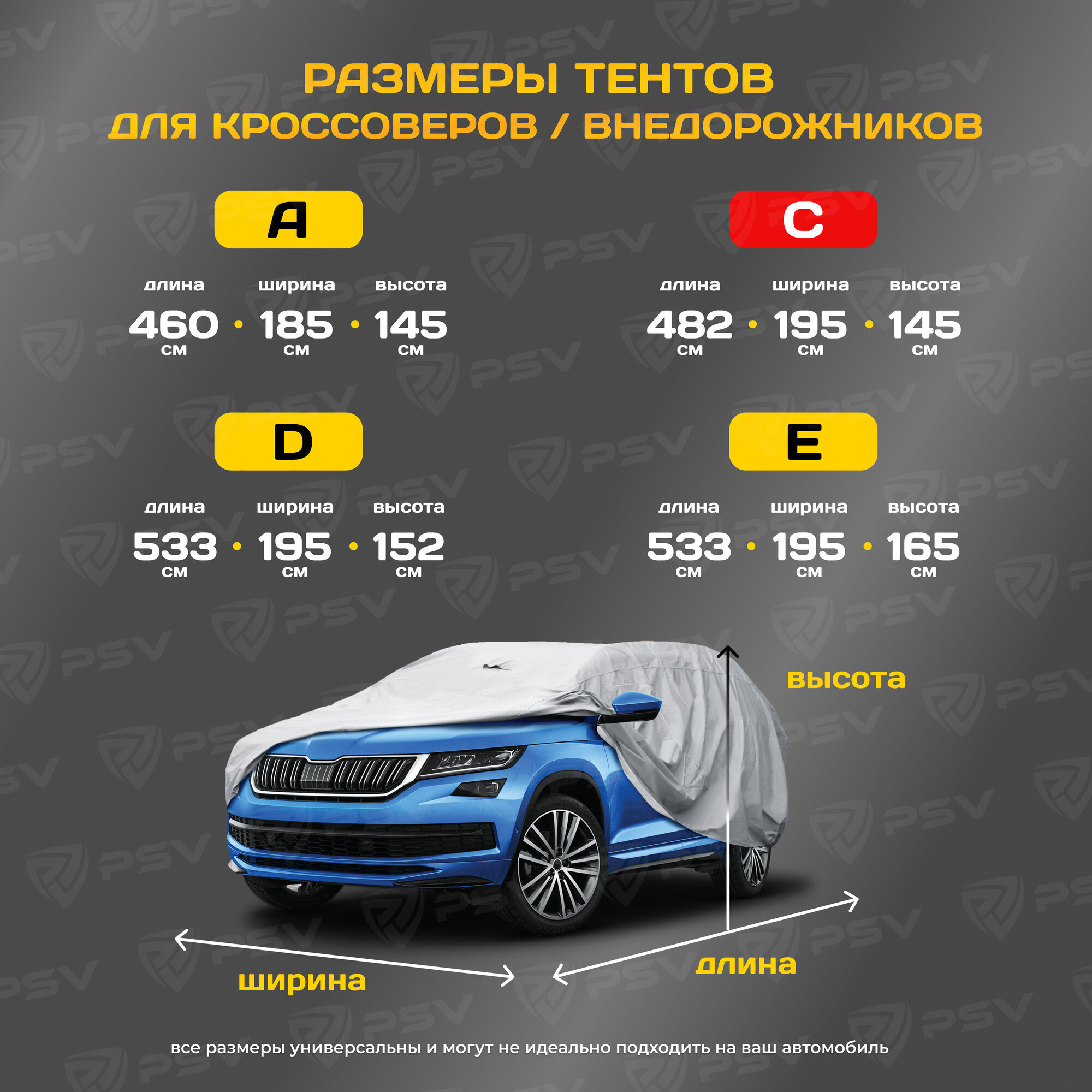 Тент на машину для кроссоверов и внедорожников PSV c молнией, размер D — 533 x 195 x 152 см, двухслойный с мягкой подкладкой , 114252 8 370 ₽