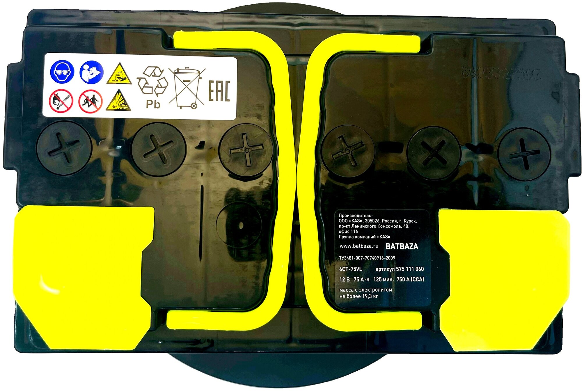 Аккумулятор автомобильный Dominator 75 А/ч 750 А обр. пол. Евро авто (278x175x190)