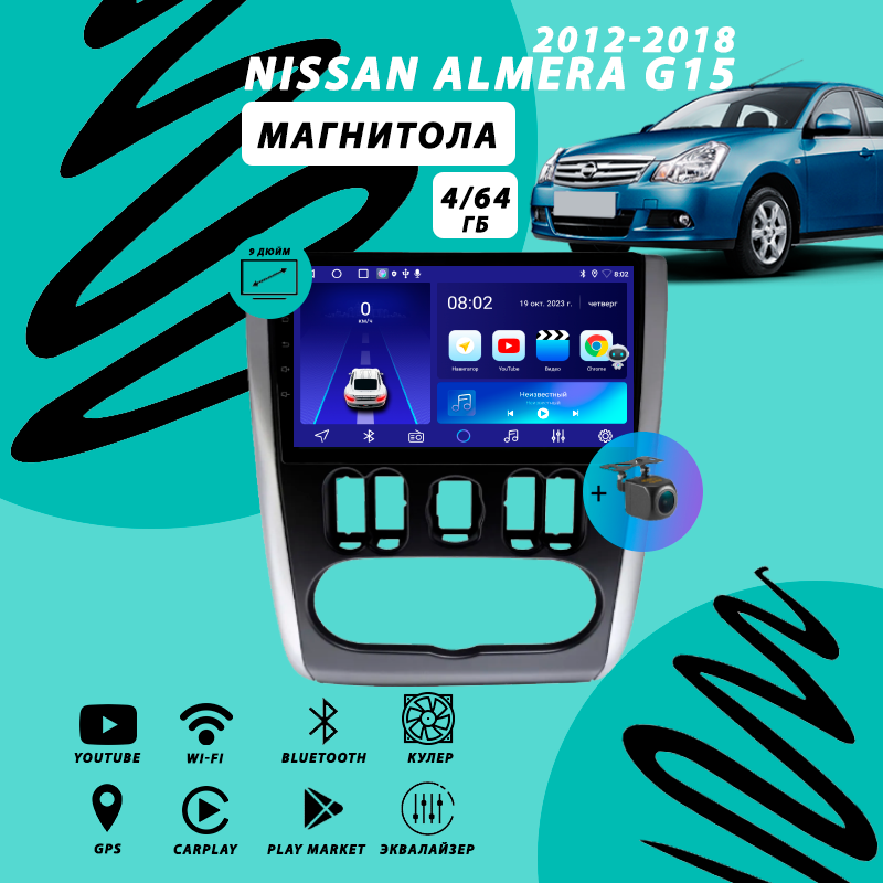Магнитола Nissan Almera 3 G15 (2012-2018) 4Гб+64Гб/Android/Carplay/кулер/Wi-Fi/Bluetooth/2din/штатная магнитола информация: