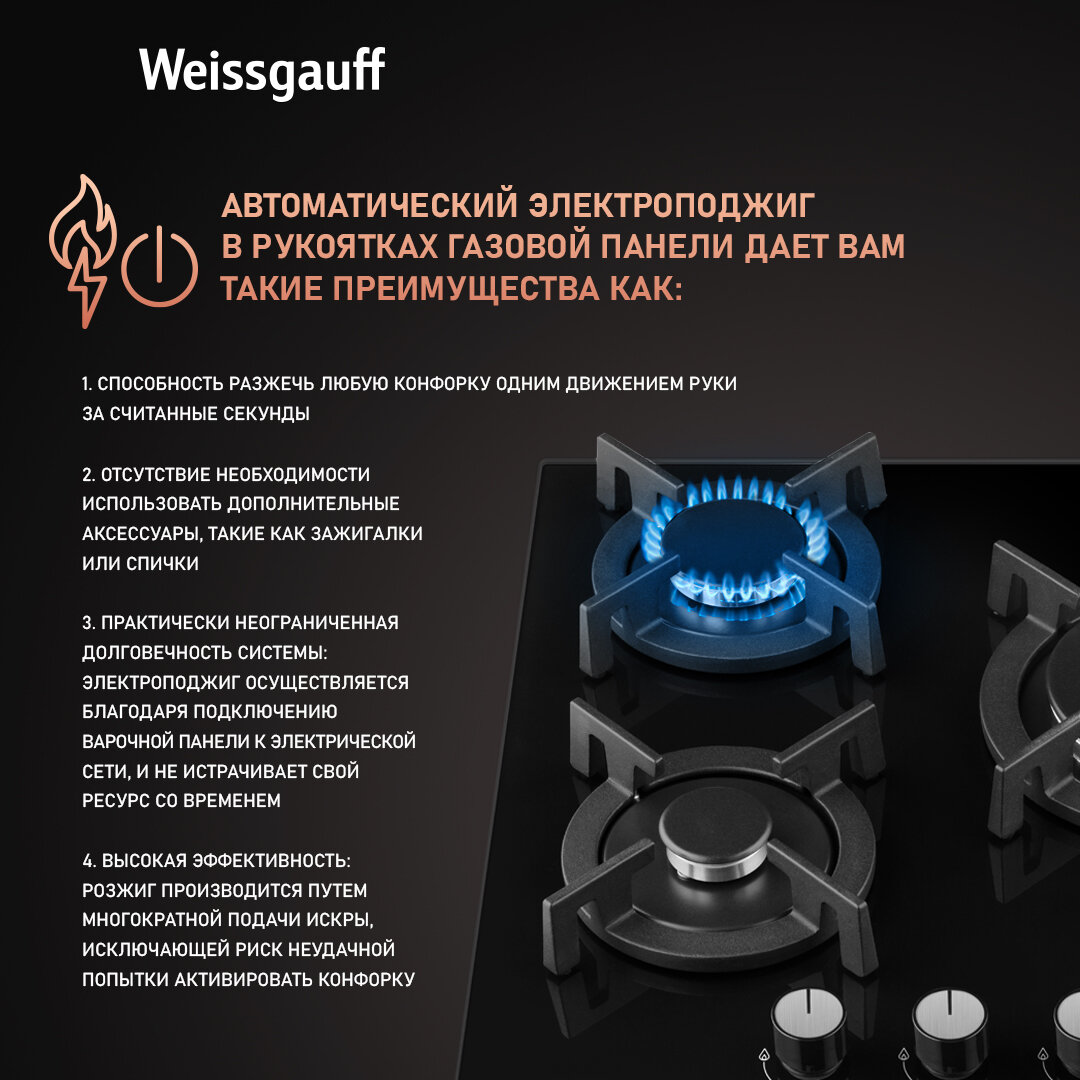 Варочная панель Weissgauff HG 453 BGV, Рукоятки Hi-Tech, Автоматический электроподжиг