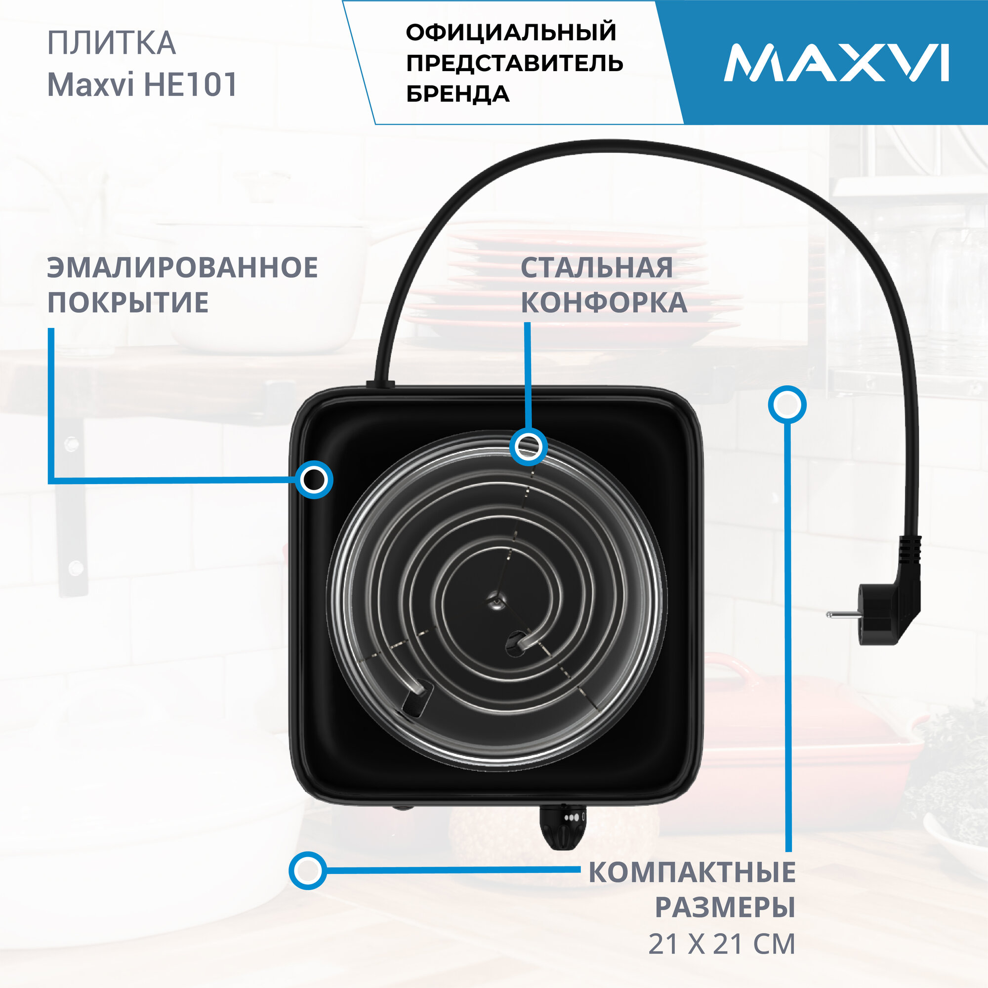 Электрическая настольная плита Maxvi HE101 1 конфорка, черная 790 ₽