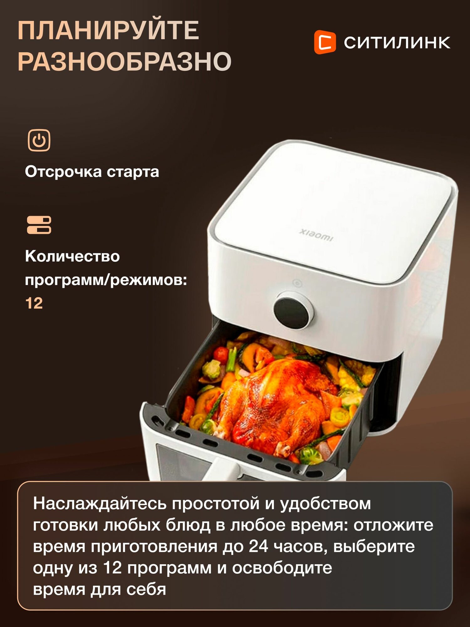 Аэрогриль Xiaomi Smart Air Fryer 6.5L, черный, с отсрочкой старта 10 990 ₽