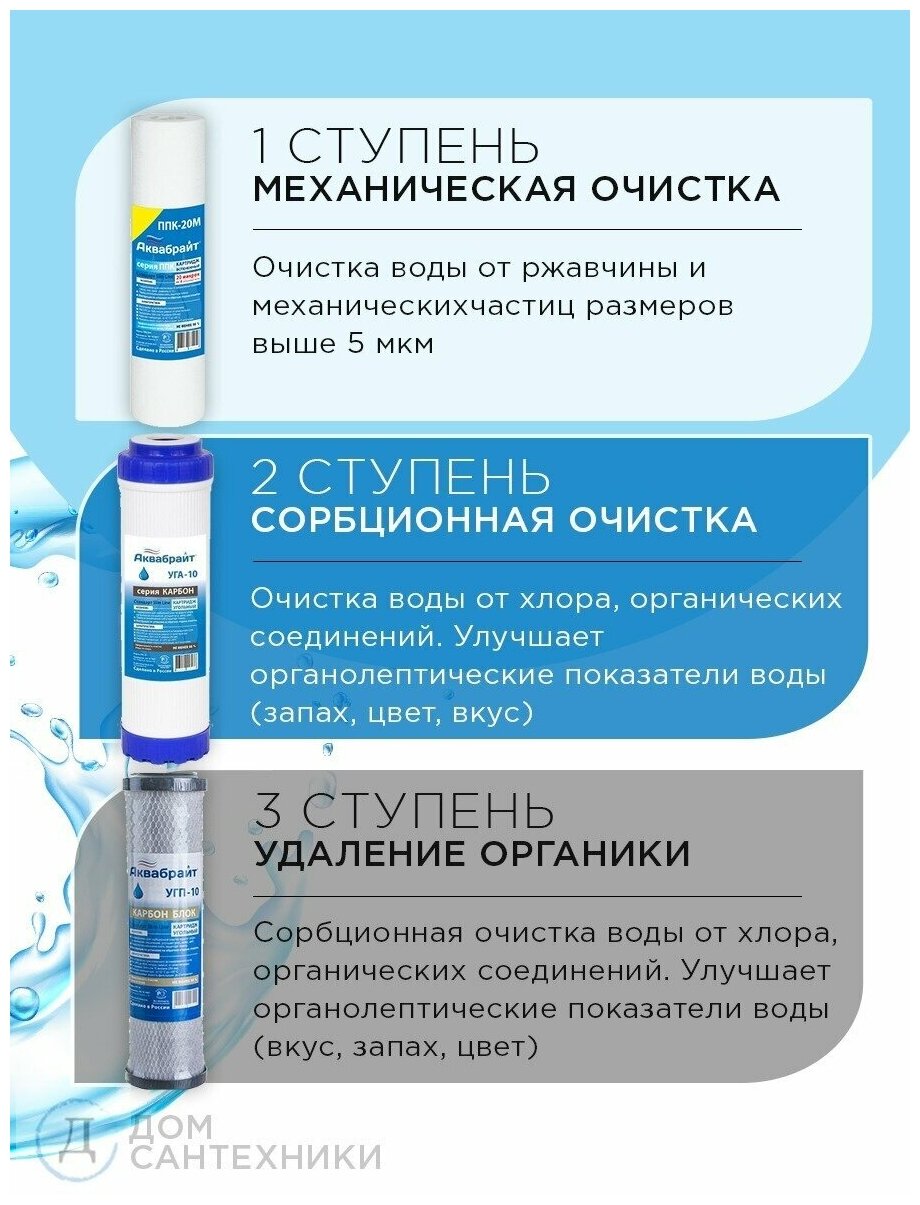 Фильтр для воды под мойку Аквабрайт абф-триа Умягчение, 3 ступени