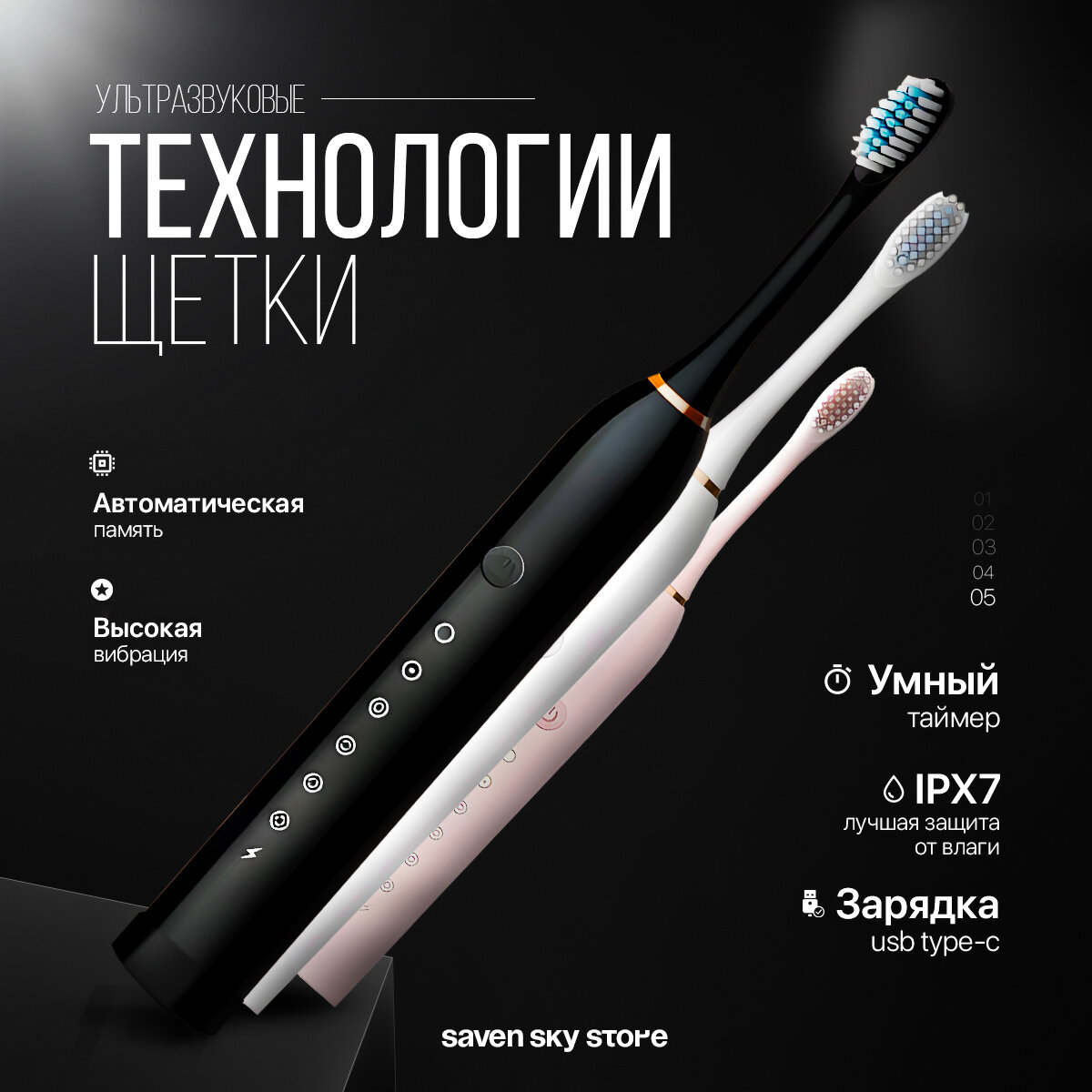 Отзывы на Электрическая зубная щетка IPX-7, цвет черная. Для взрослых и детей 6 уникальных режимов и 4-мя насадками.