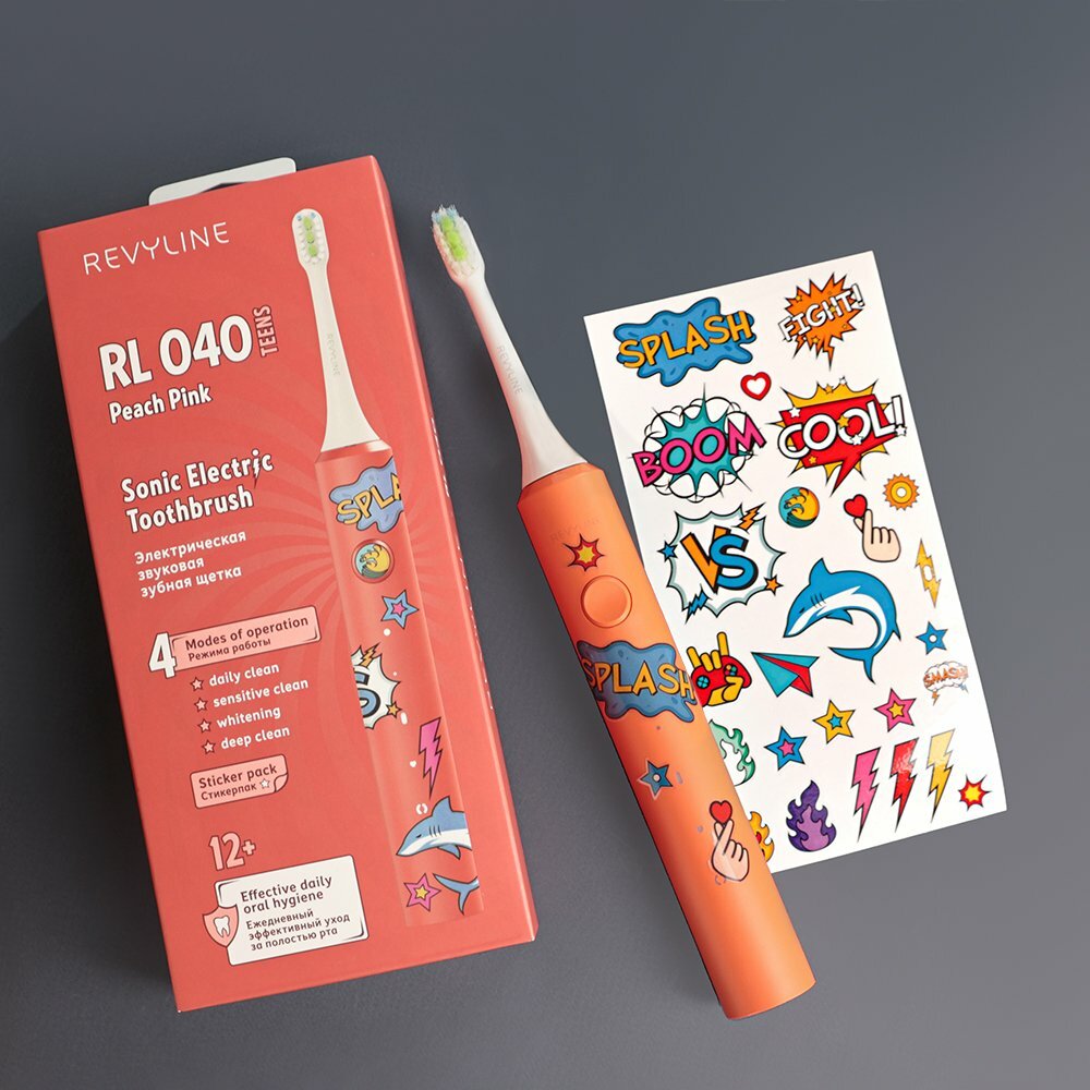 Электрическая звуковая щетка Revyline RL 040 Teens, персиково-розовая информация: