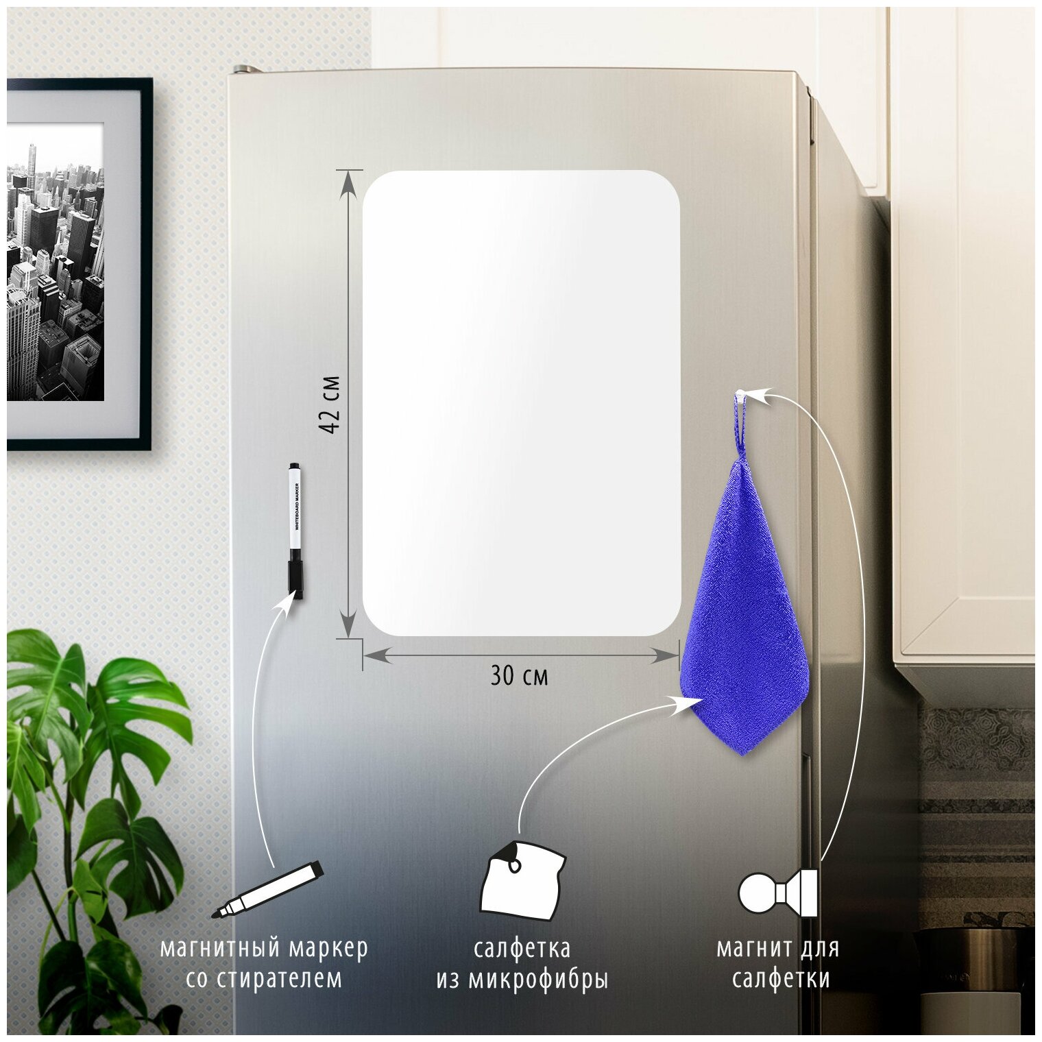 Доска на холодильник магнитно-маркерная 42х30см с маркером, магнитом и салфеткой, BRAUBERG, 237847 информация: