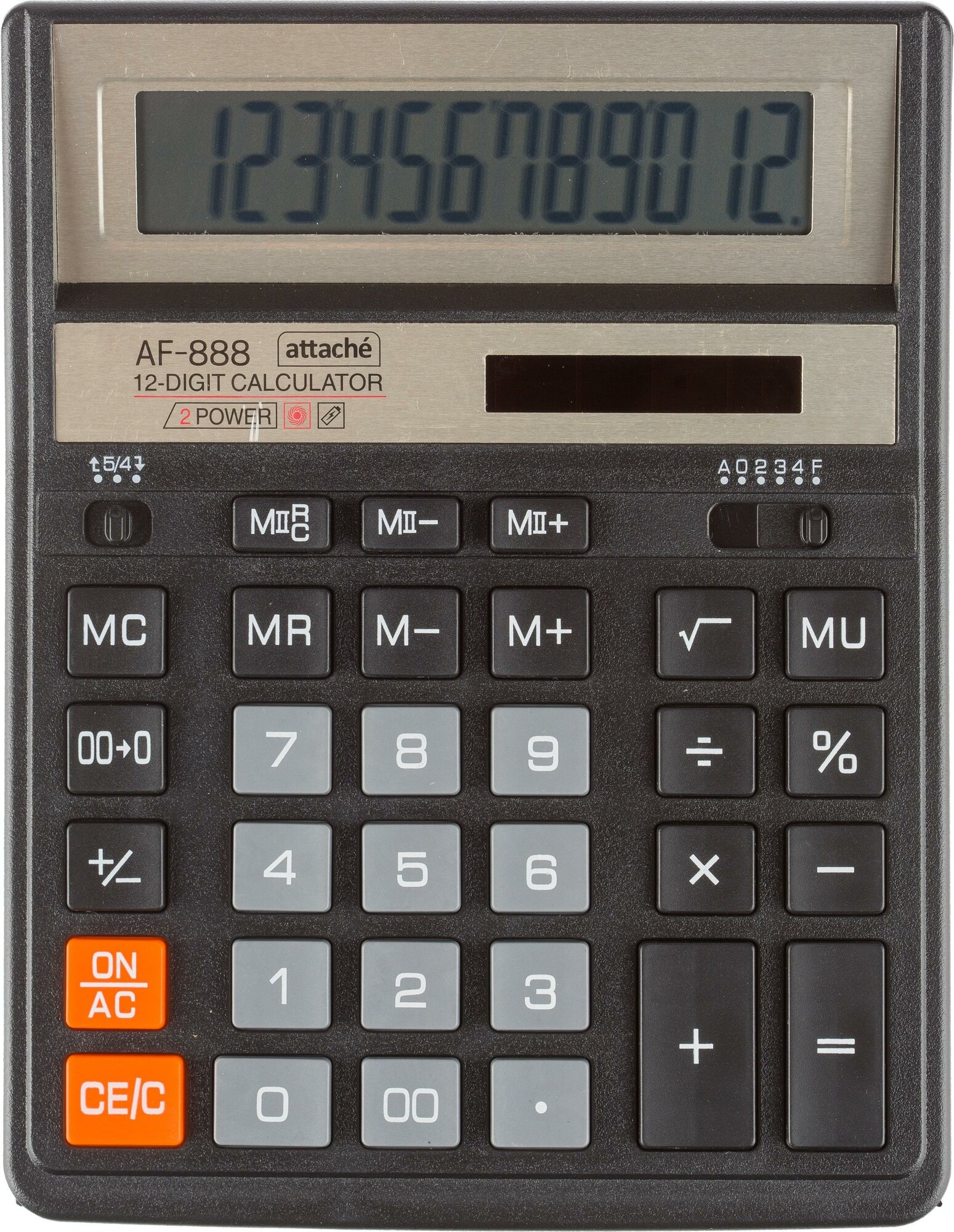 10 цен на Калькулятор настольный Attache полноразмерный, ASF-888, 12 разрядов, двойное питание, 204х158 мм, черный (SDC-888X)