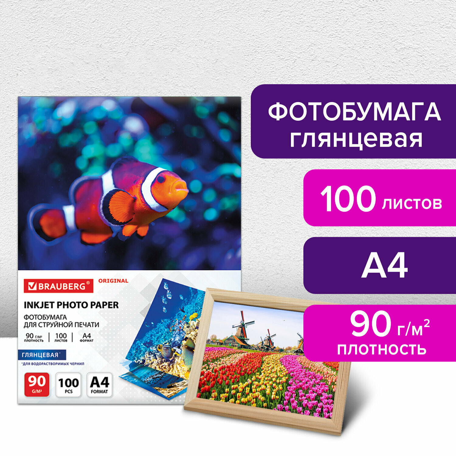 10 цен на Фотобумага глянцевая / бумага для печати фото на струйных принтерах, А4, 90 г/м2, односторонняя, 100 листов, Brauberg Original, 363978
