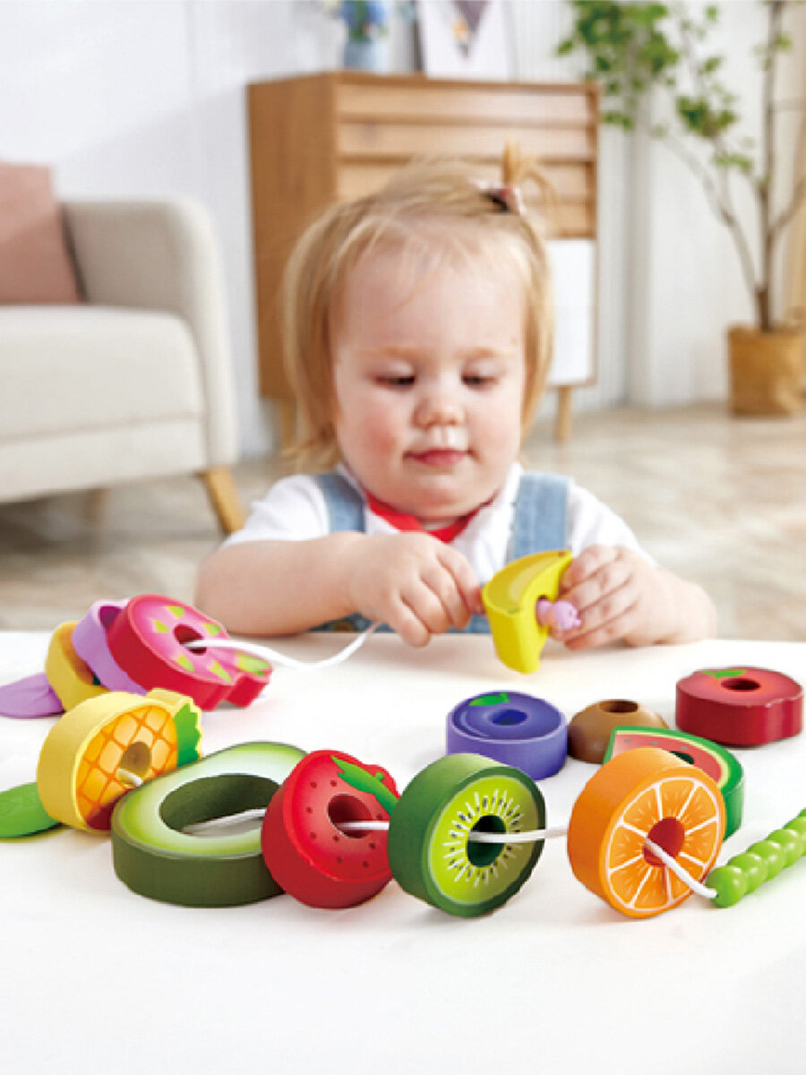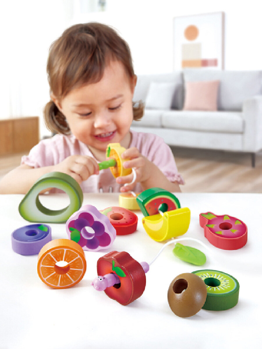 Отзывы на Игрушка деревянная шнуровка для детей Hape "Веселые гусеницы" (14 предметов - шнурки и фрукты) E1072_HP