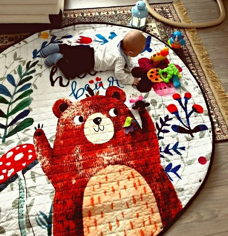 Отзывы на Детский коврик мешочек с нескользящим покрытием "Медведь" диаметр 150 см