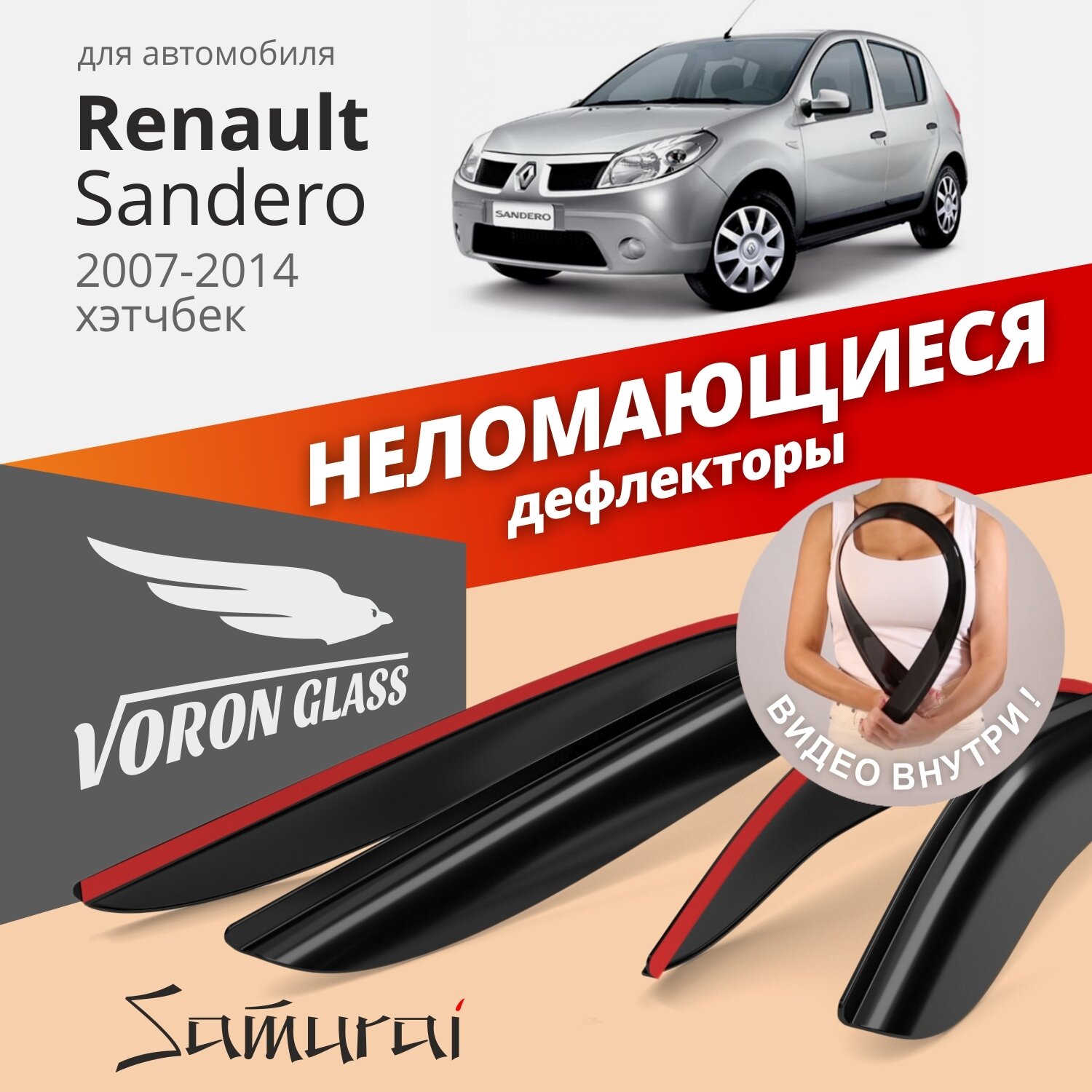 Дефлекторы окон неломающиеся Voron Glass серия Samurai для Renault Sandero 1/ STEPWAY 2010-2014 накладные 4 шт. информация: