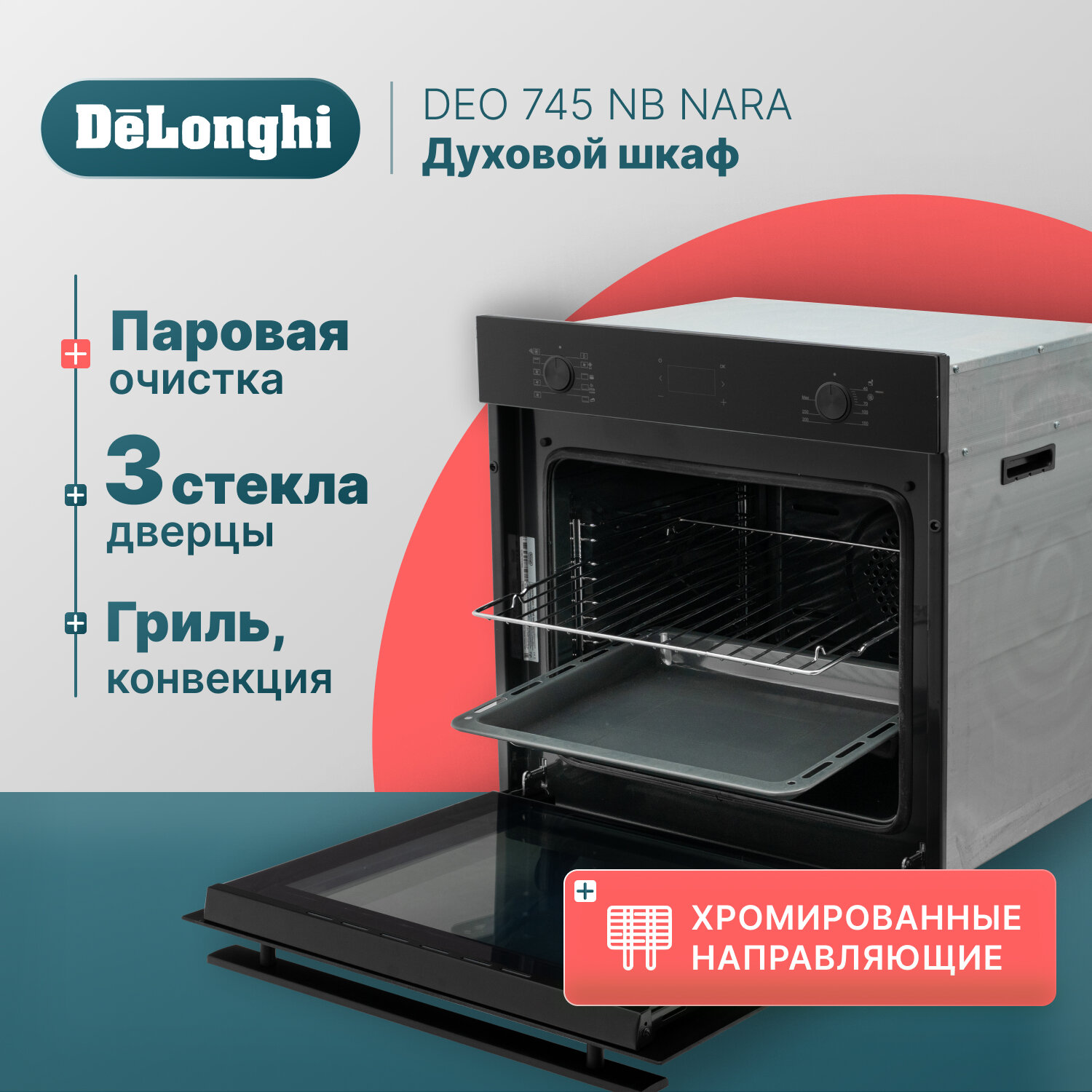 Встраиваемая независимая электрическая духовка DeLonghi DEO 745 NB NARA информация: