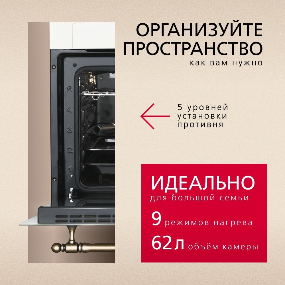 Электрический духовой шкаф Hansa BOEW68269, встраиваемый, 60 см, 62 л, 9 режимов, с таймером, конвекцией, грилем, быстрым нагревом, цвета слоновой кости 37 599 ₽