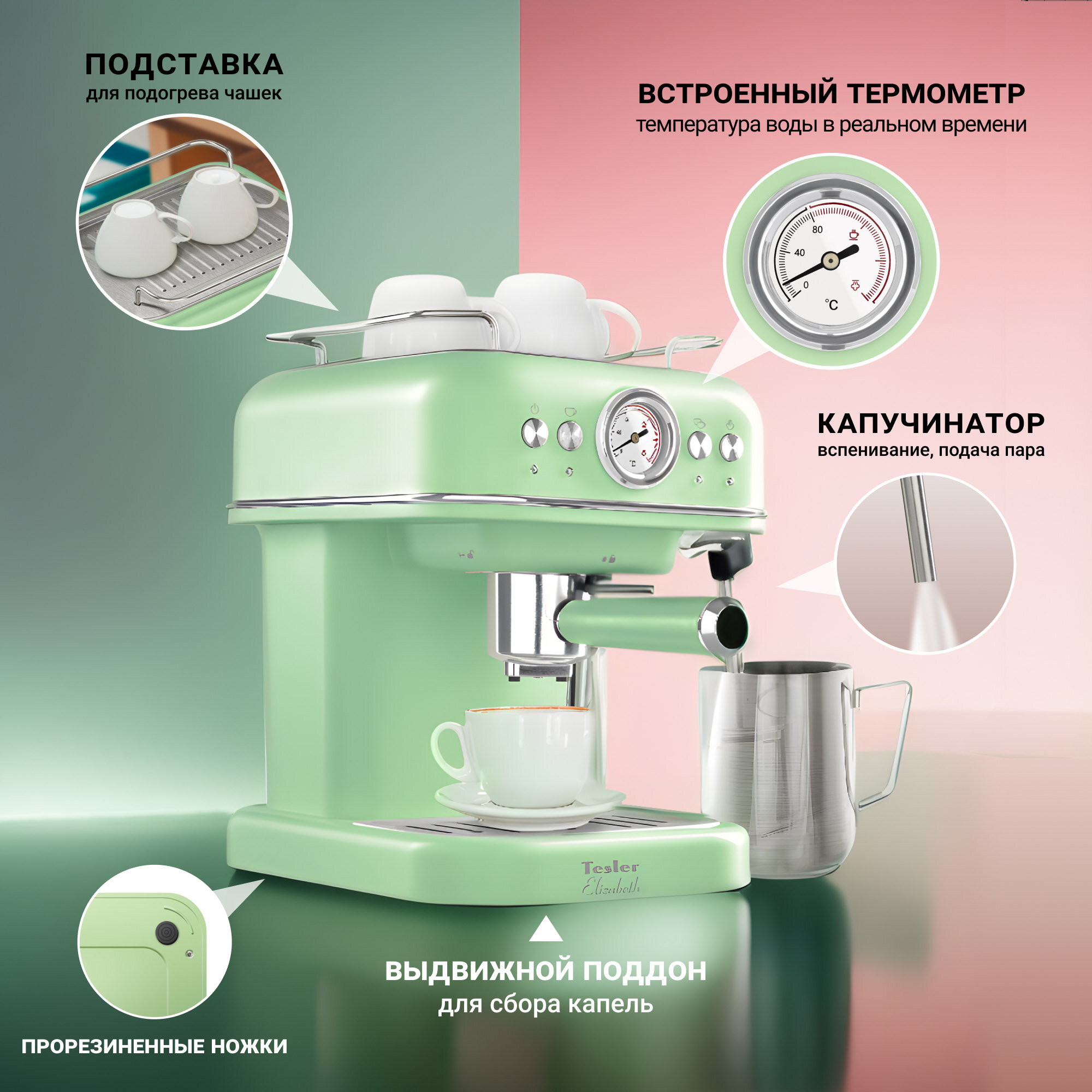 Кофеварка эспрессо TESLER ECM-245 GREEN информация: