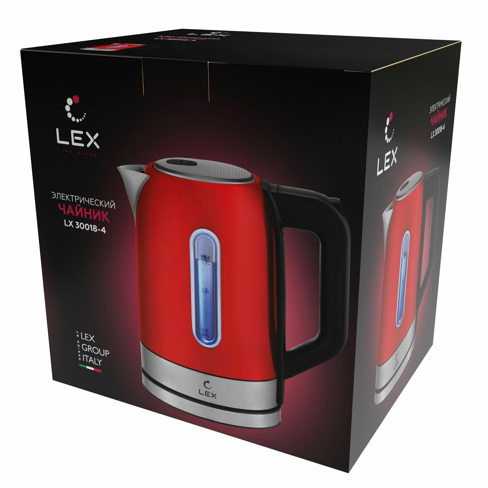 Чайник электрический Lex LX30018-4, 2200Вт, 1.7л, автоотключение, защита от перегрева, блокировка включения без воды, подсветка колбы, цвет красный информация: